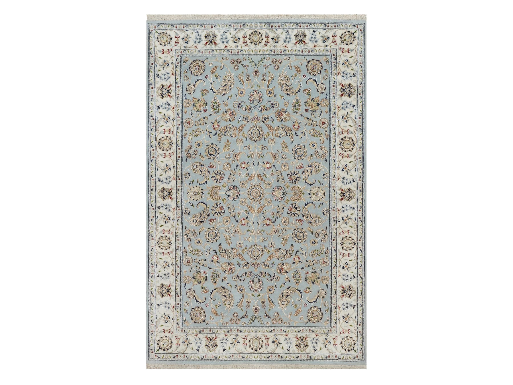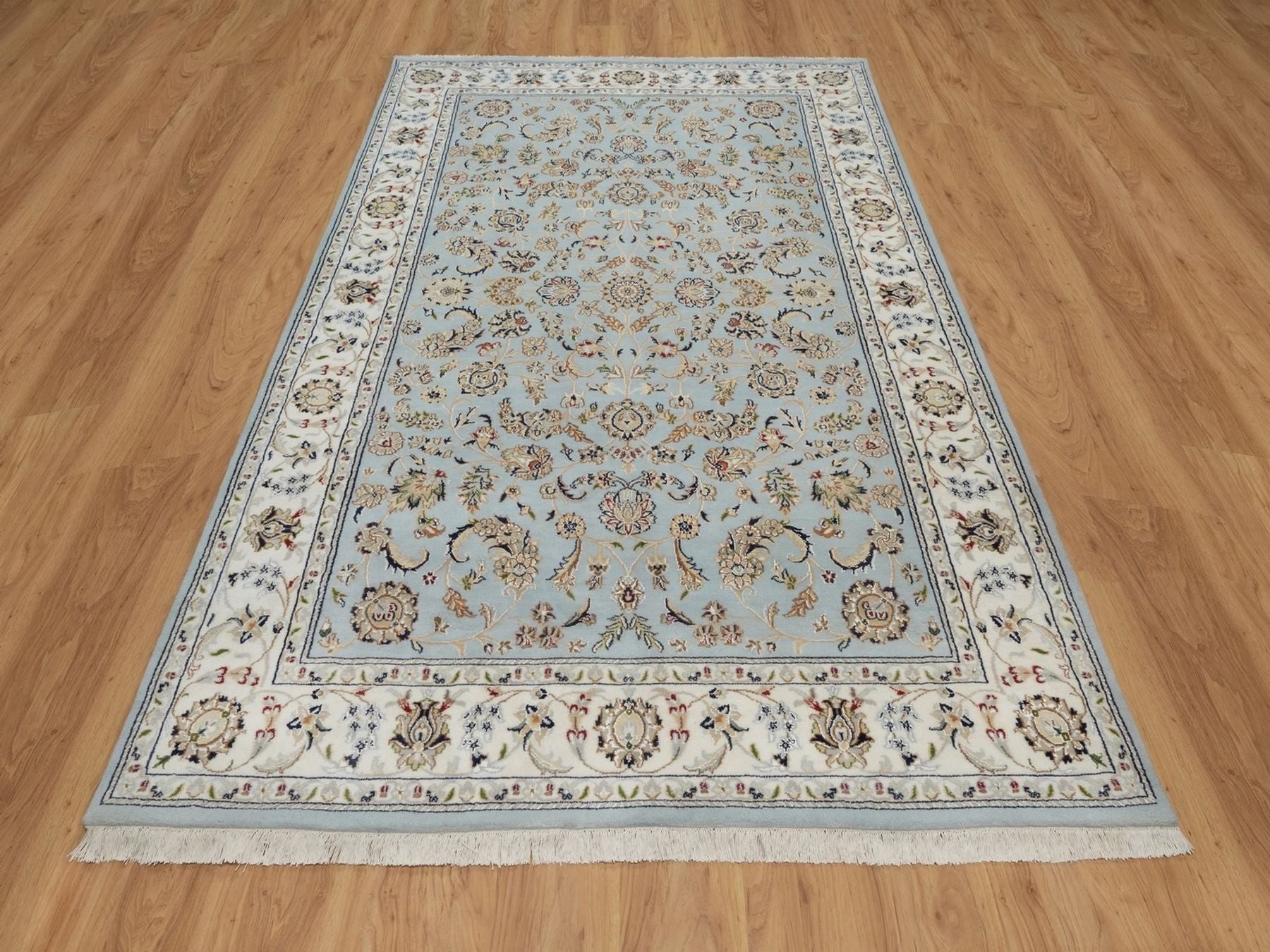 5'11" x 9'4" New Hand Knotted Blue Wool & Silk Rectangle Oriental Rug - MOA10292140