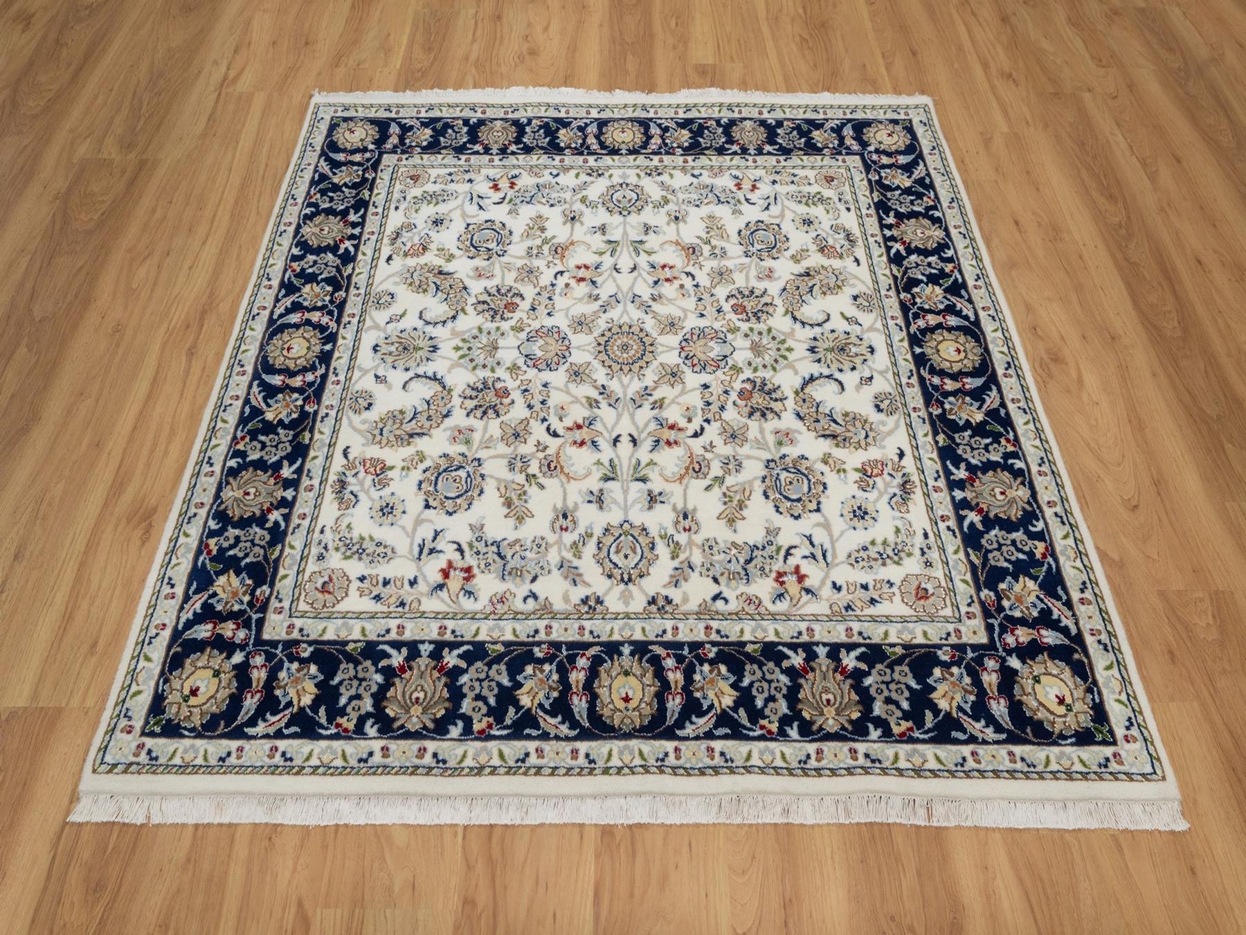 5'7" x 5'8" New Hand Knotted Ivory Wool & Silk Square Oriental Rug - MOA10292100