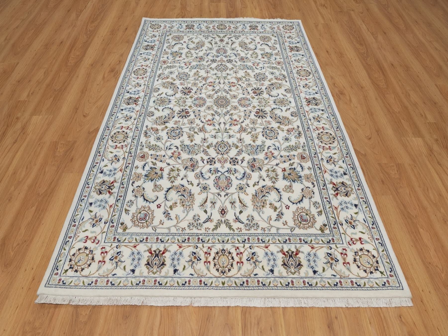 6'0" x 9'3" New Hand Knotted Ivory Wool & Silk Rectangle Oriental Rug - MOA10292139