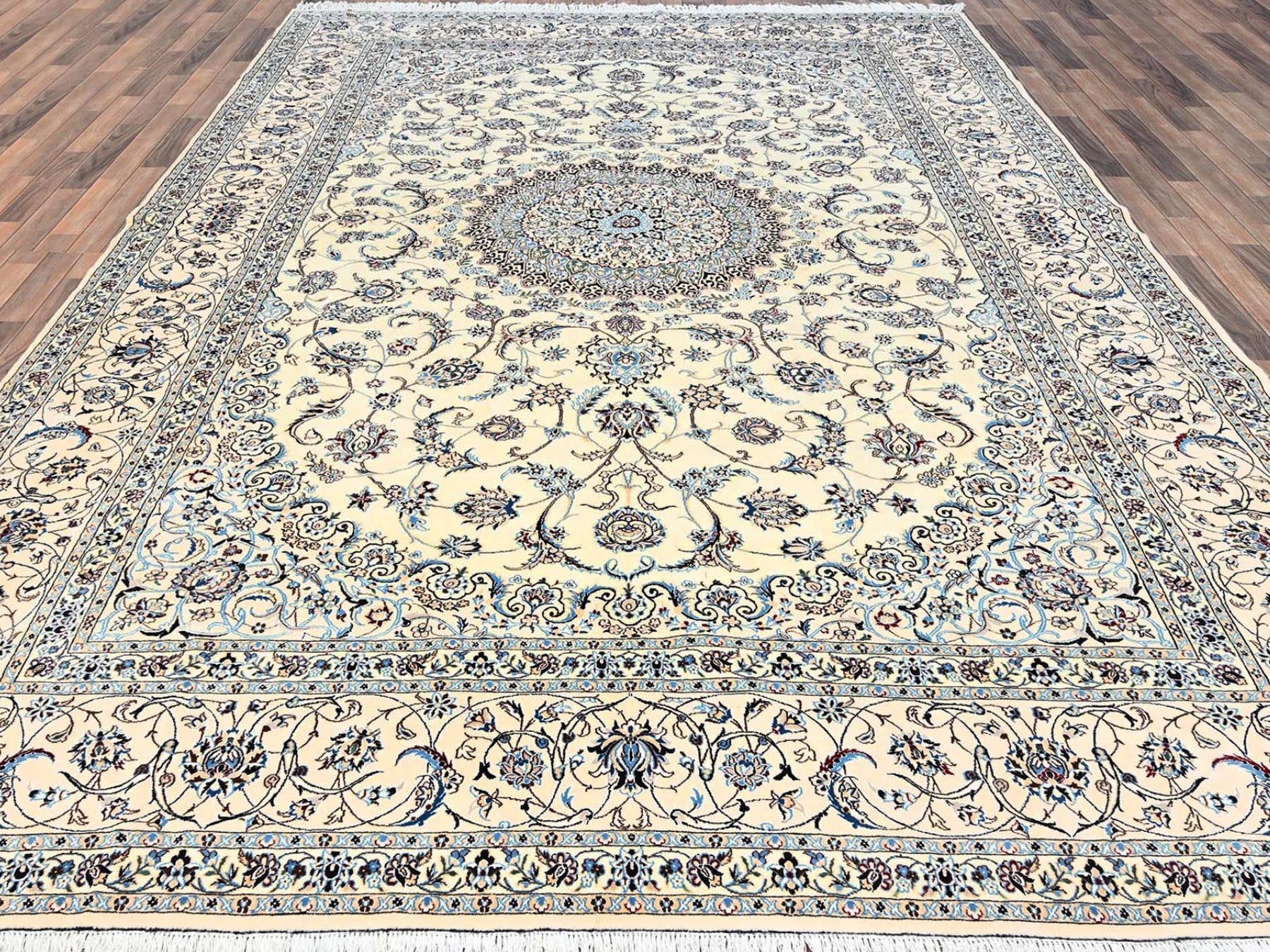 9'6" x 13'2" New Hand Knotted Ivory Wool & Silk Rectangle Oriental Rug - MOA1021456