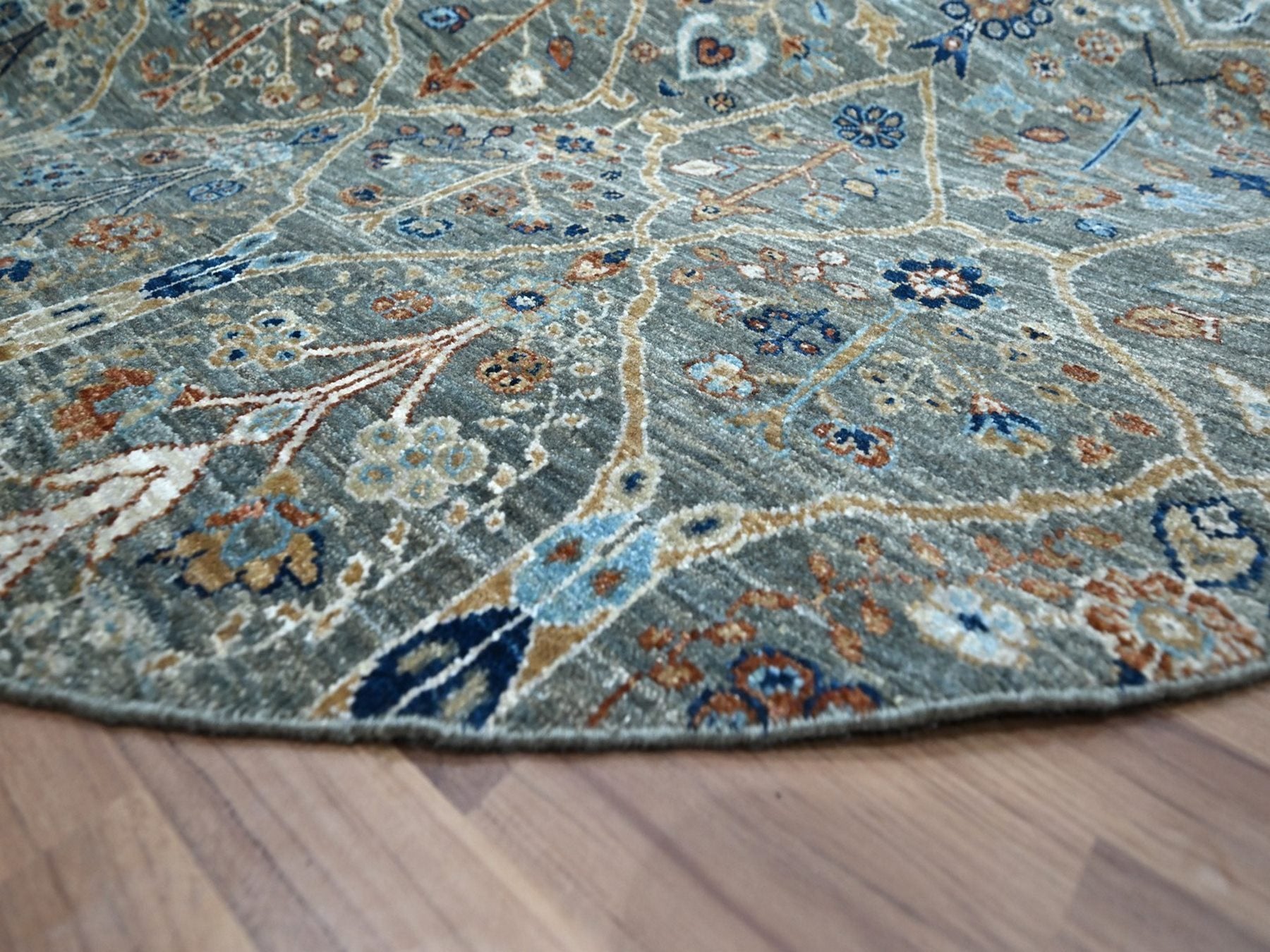 8'0" x 8'0" New Hand Knotted Green Wool Round Oriental Rug - MOA10276913