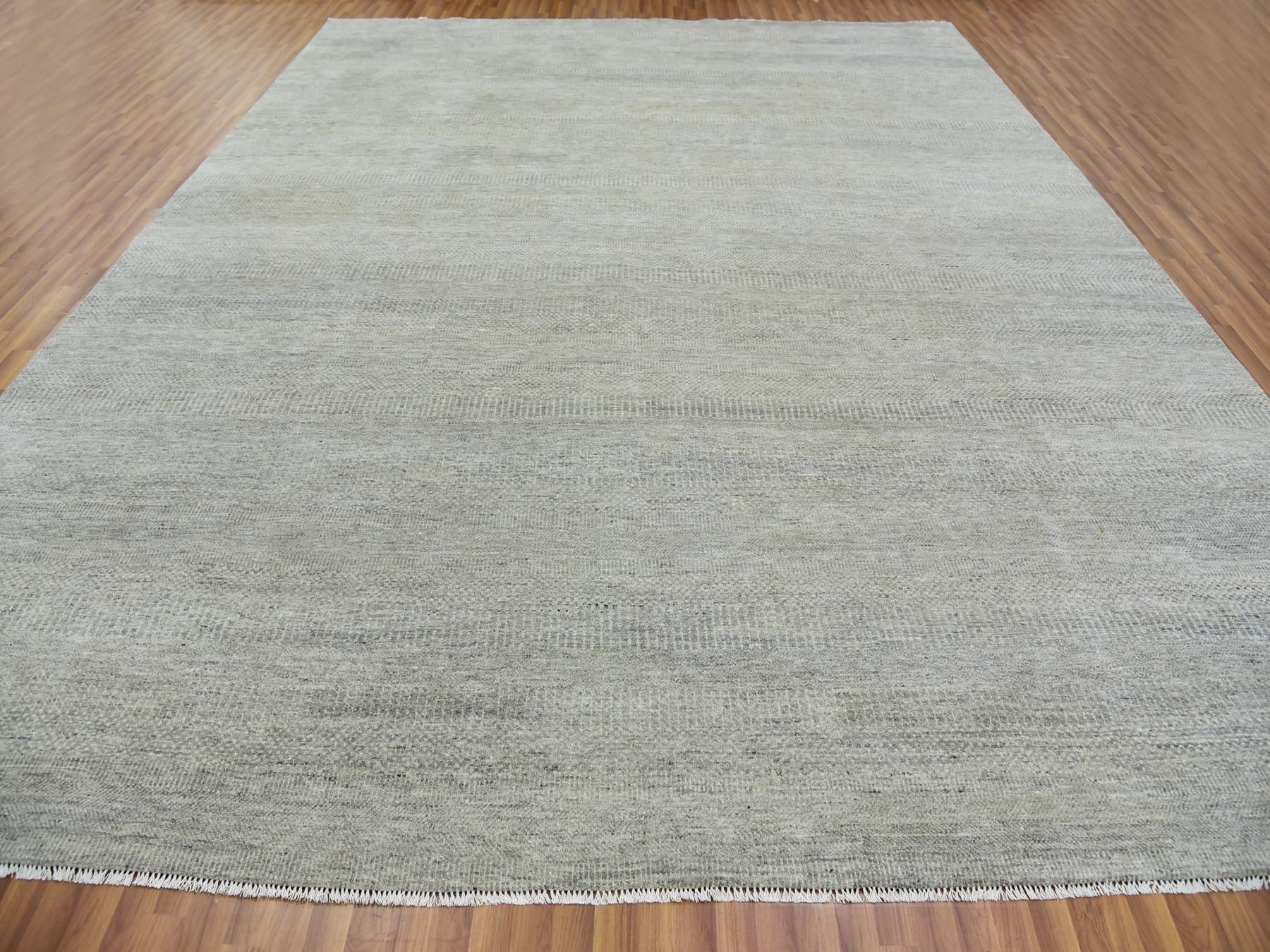 11'10" x 15'4" New Hand Knotted Grey Wool Rectangle Oriental Rug - MOA10279760