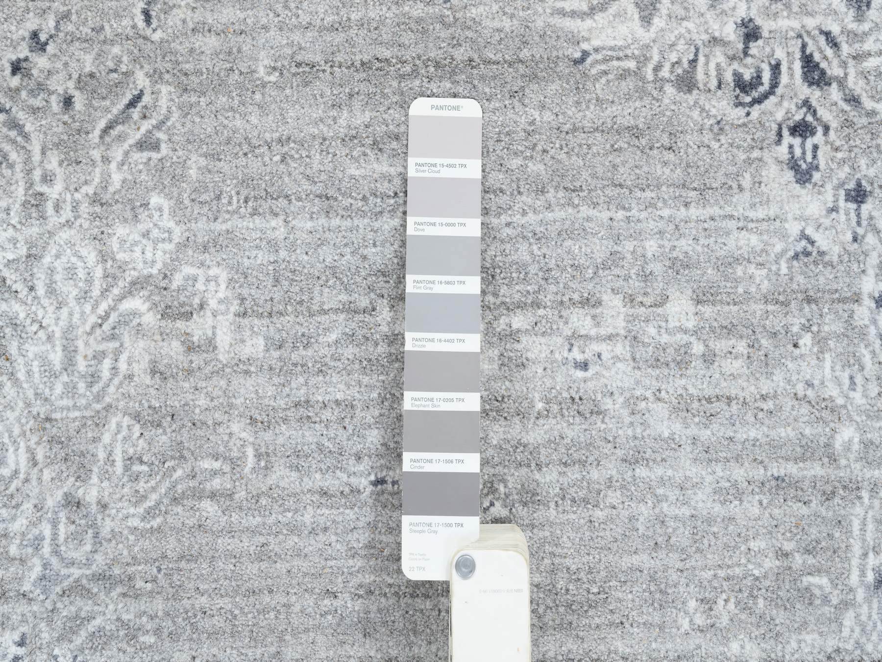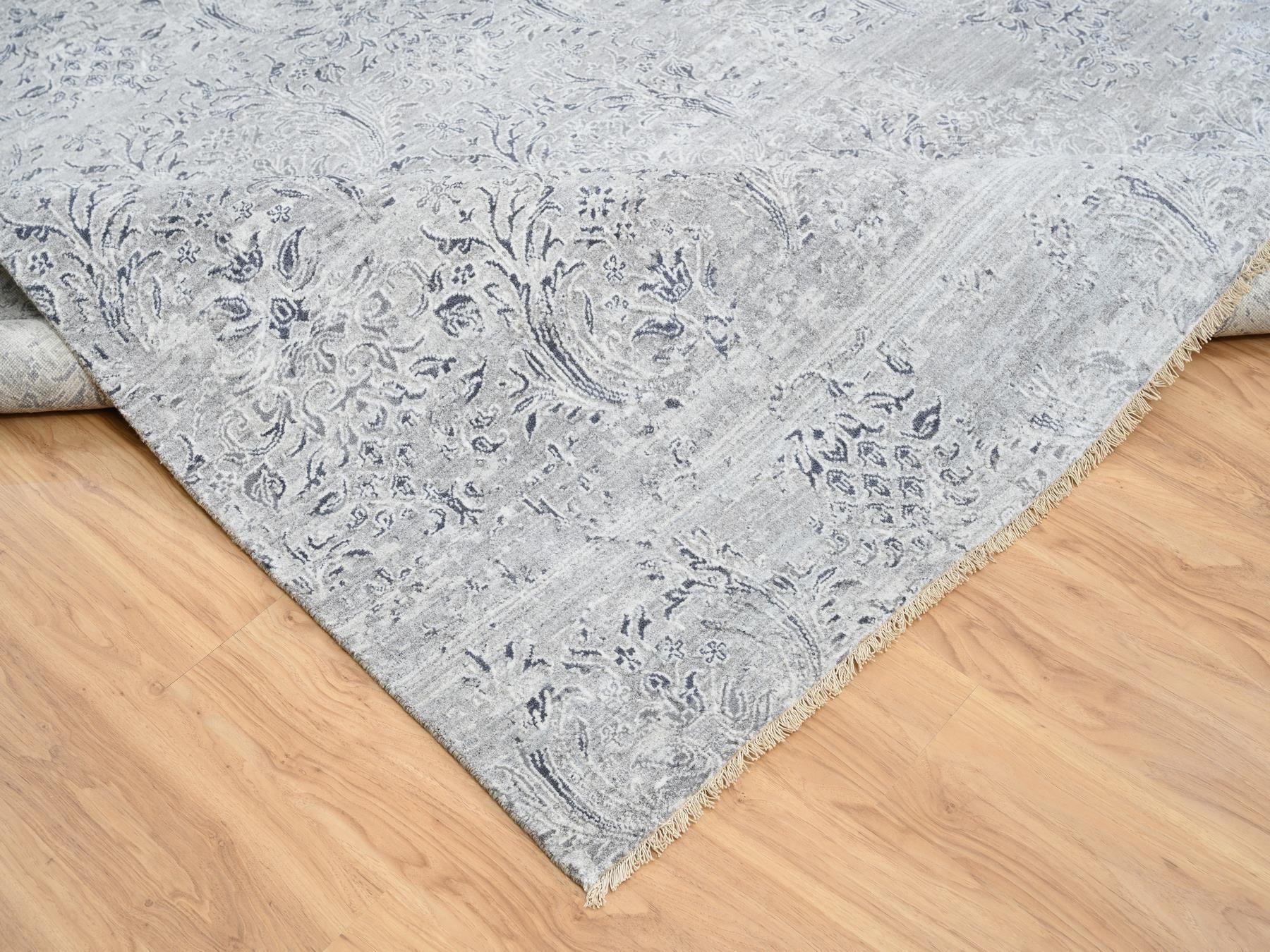 11'9" x 15'0" New Hand Knotted Grey Wool & Silk Rectangle Oriental Rug - MOA10265042