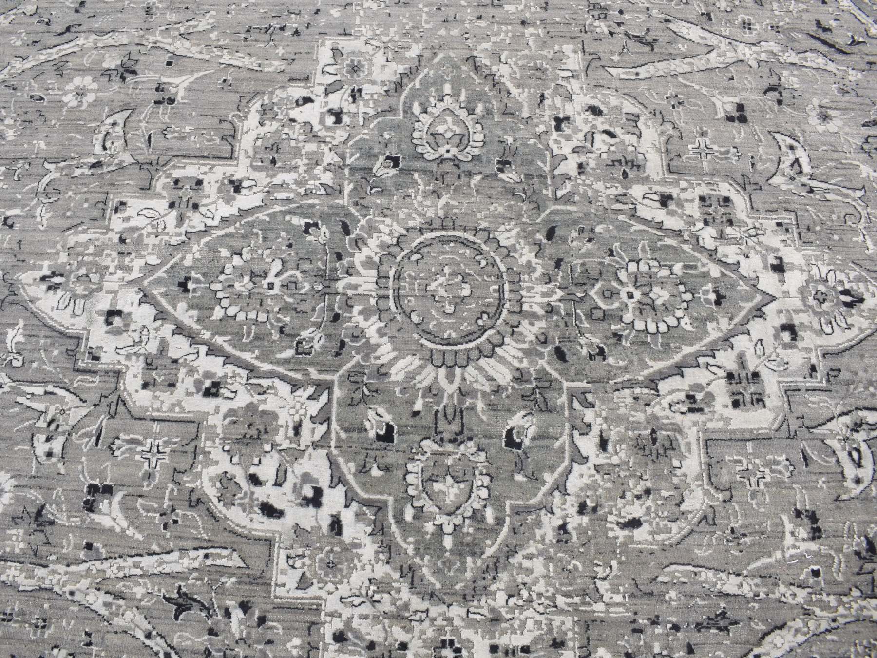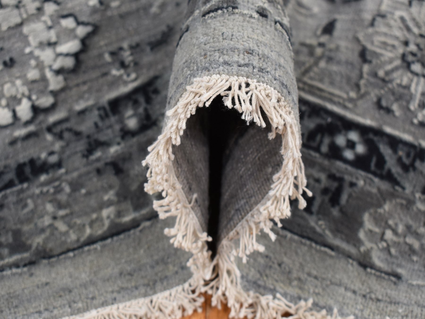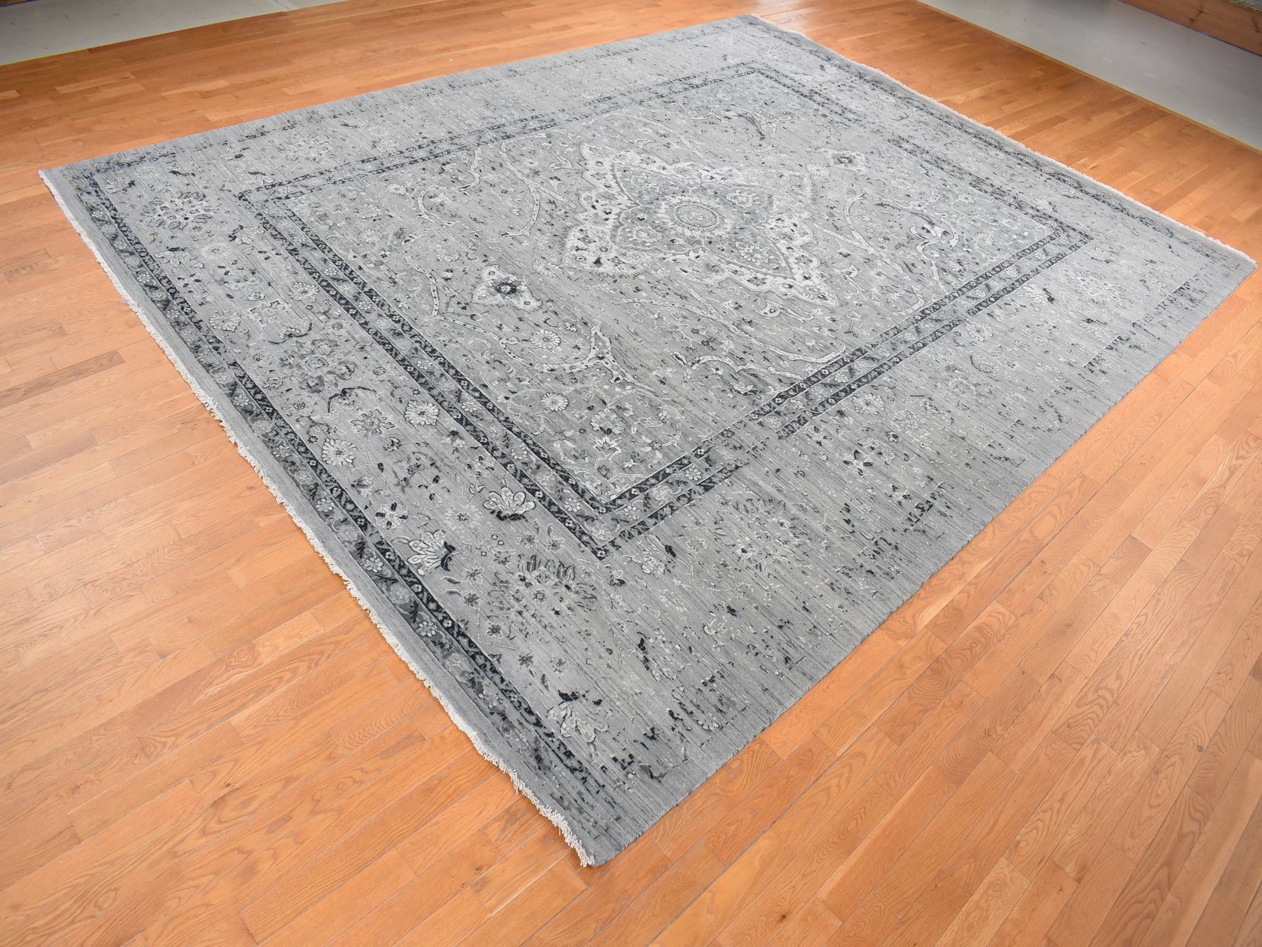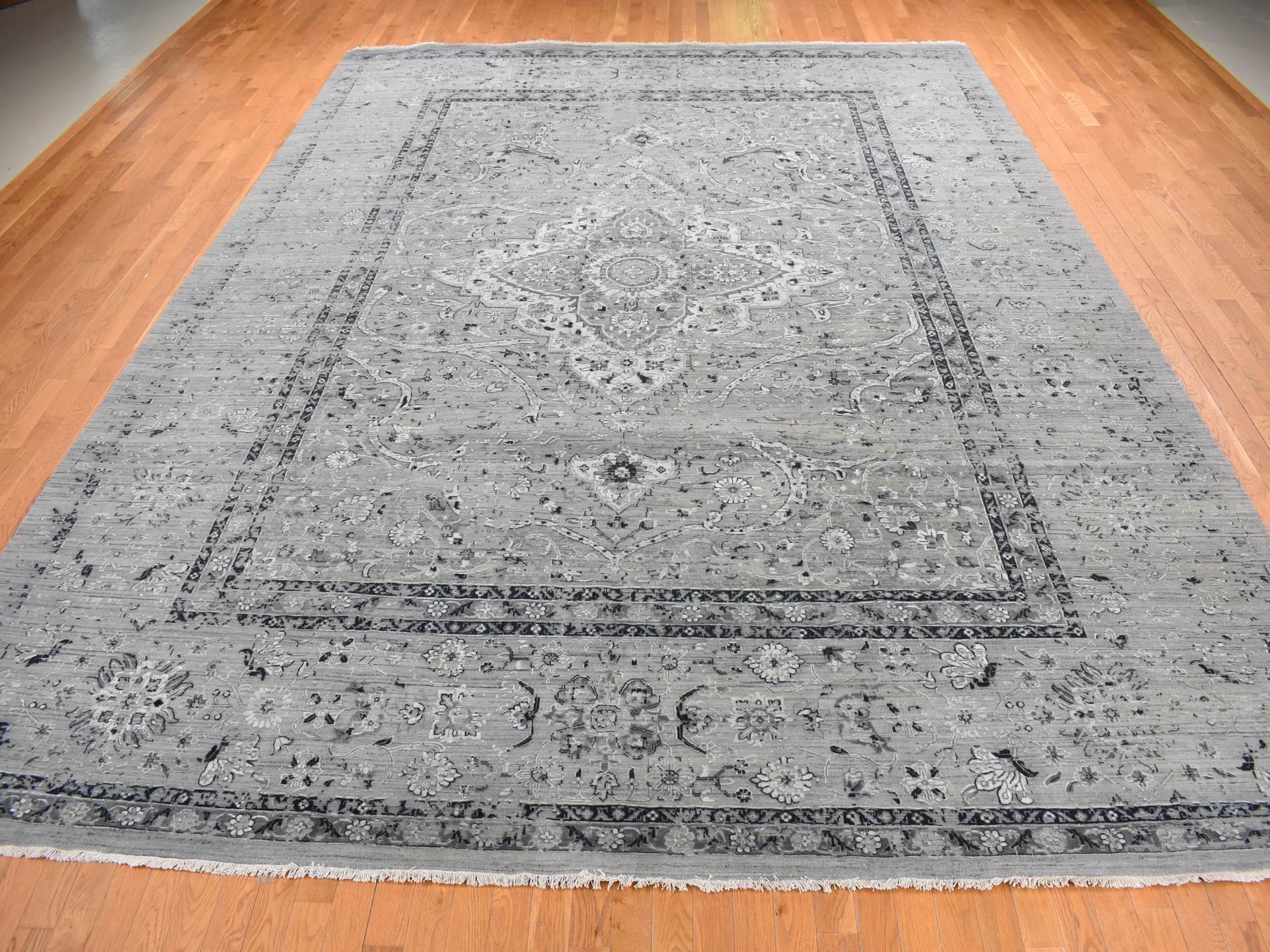 12'0" x 15'5" New Hand Knotted Grey Wool & Silk Rectangle Oriental Rug - MOA10287648