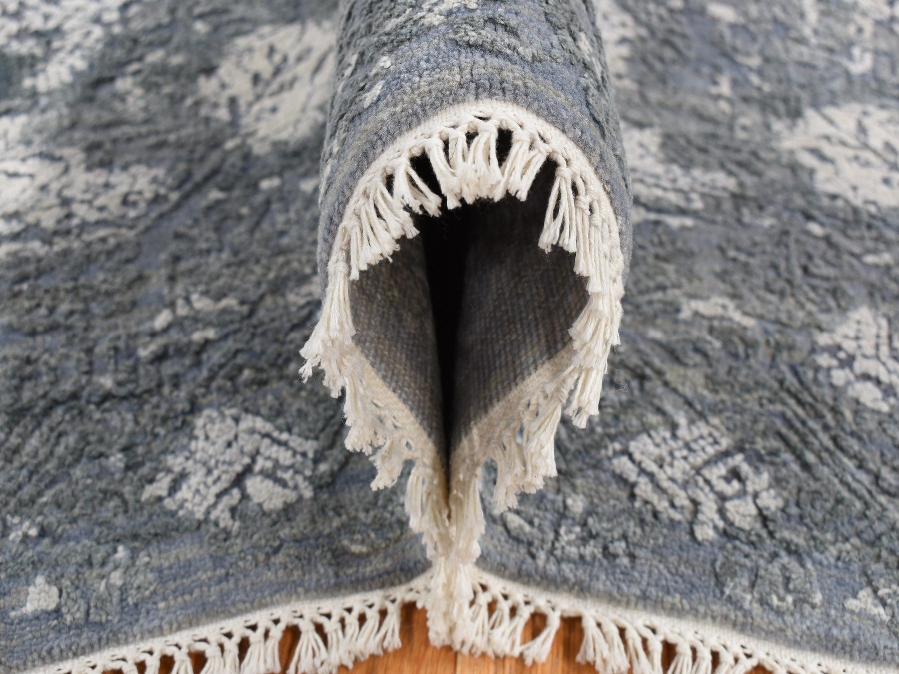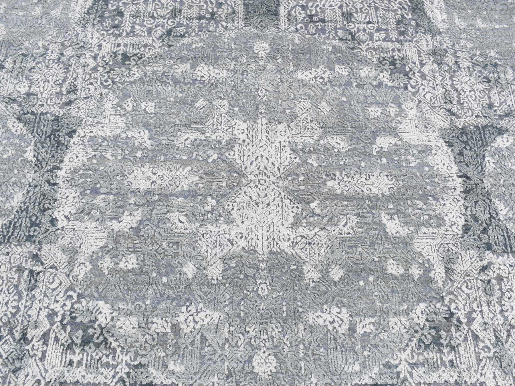 7'10" x 10'0" New Hand Knotted Grey Wool & Pure Silk Rectangle Oriental Rug - MOA10287698