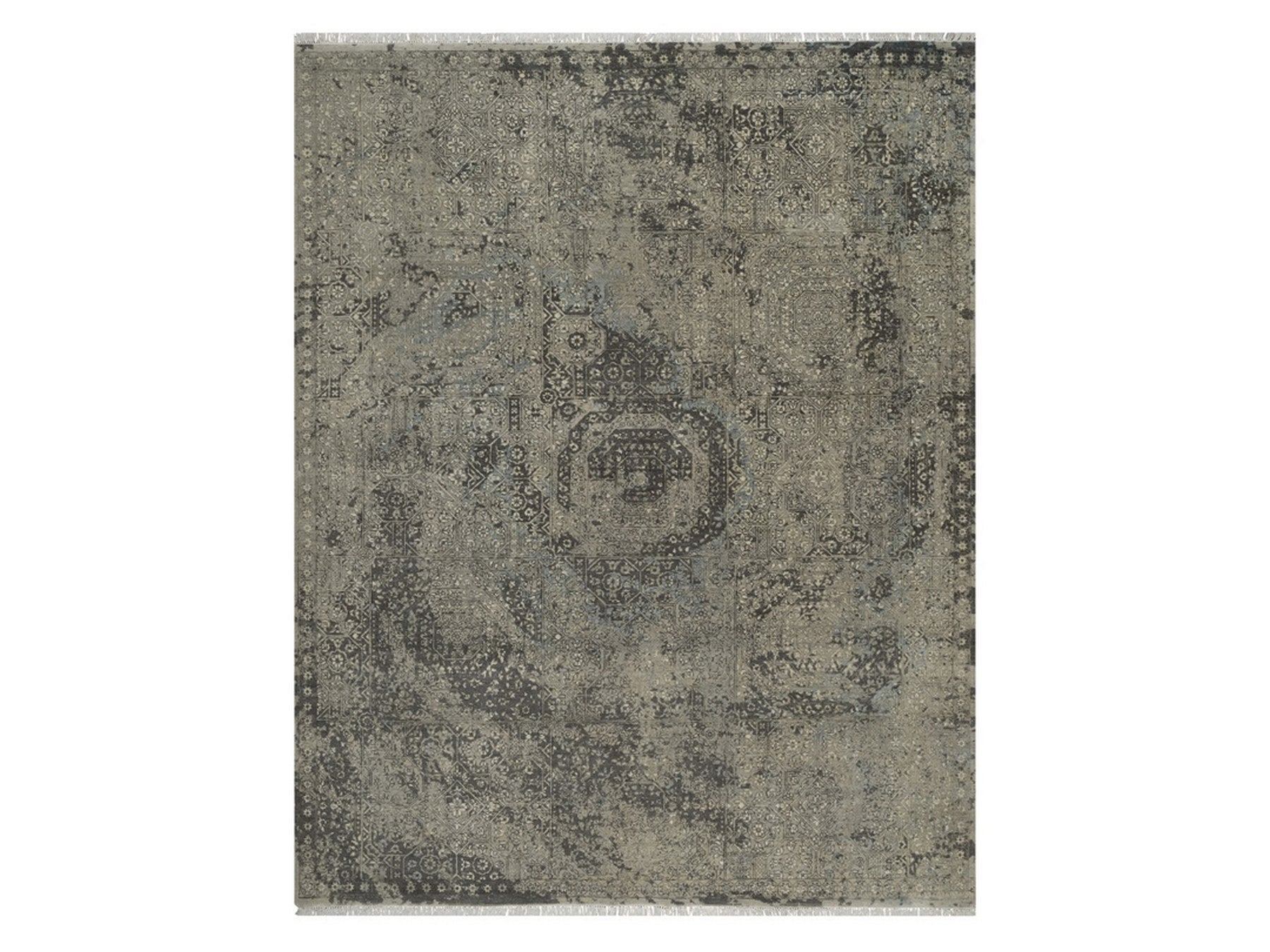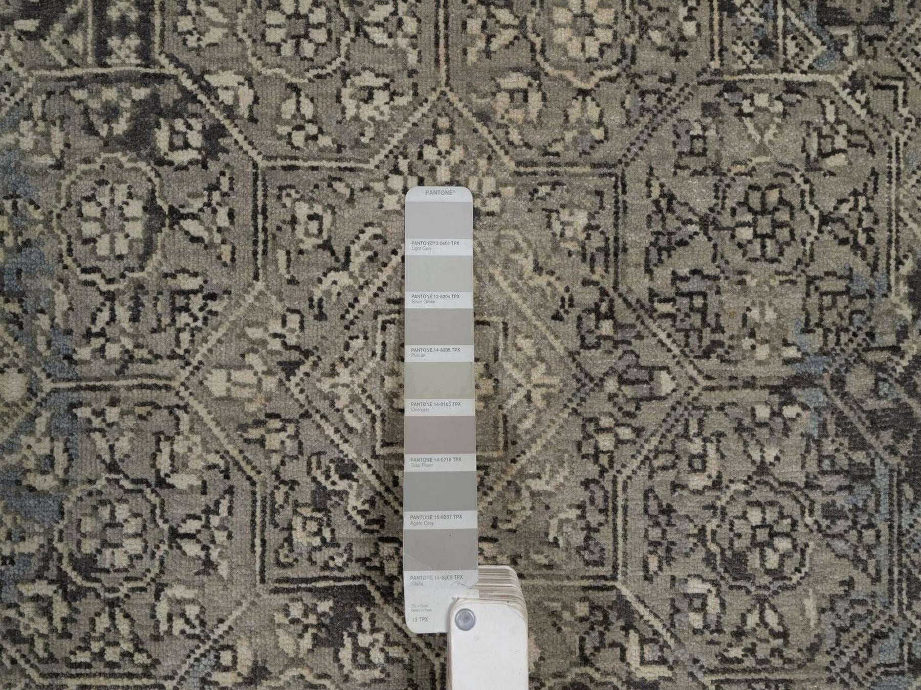7'10" x 9'11" New Hand Knotted Grey Wool Rectangle Oriental Rug - MOA10292331