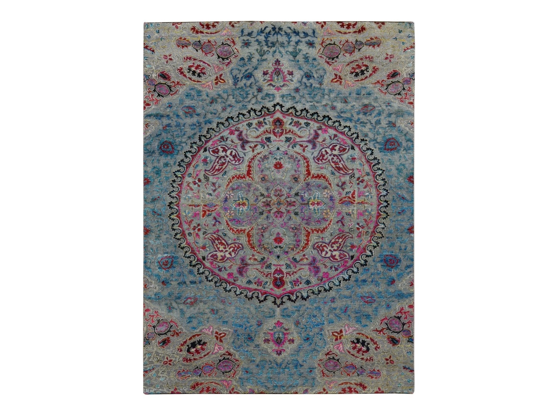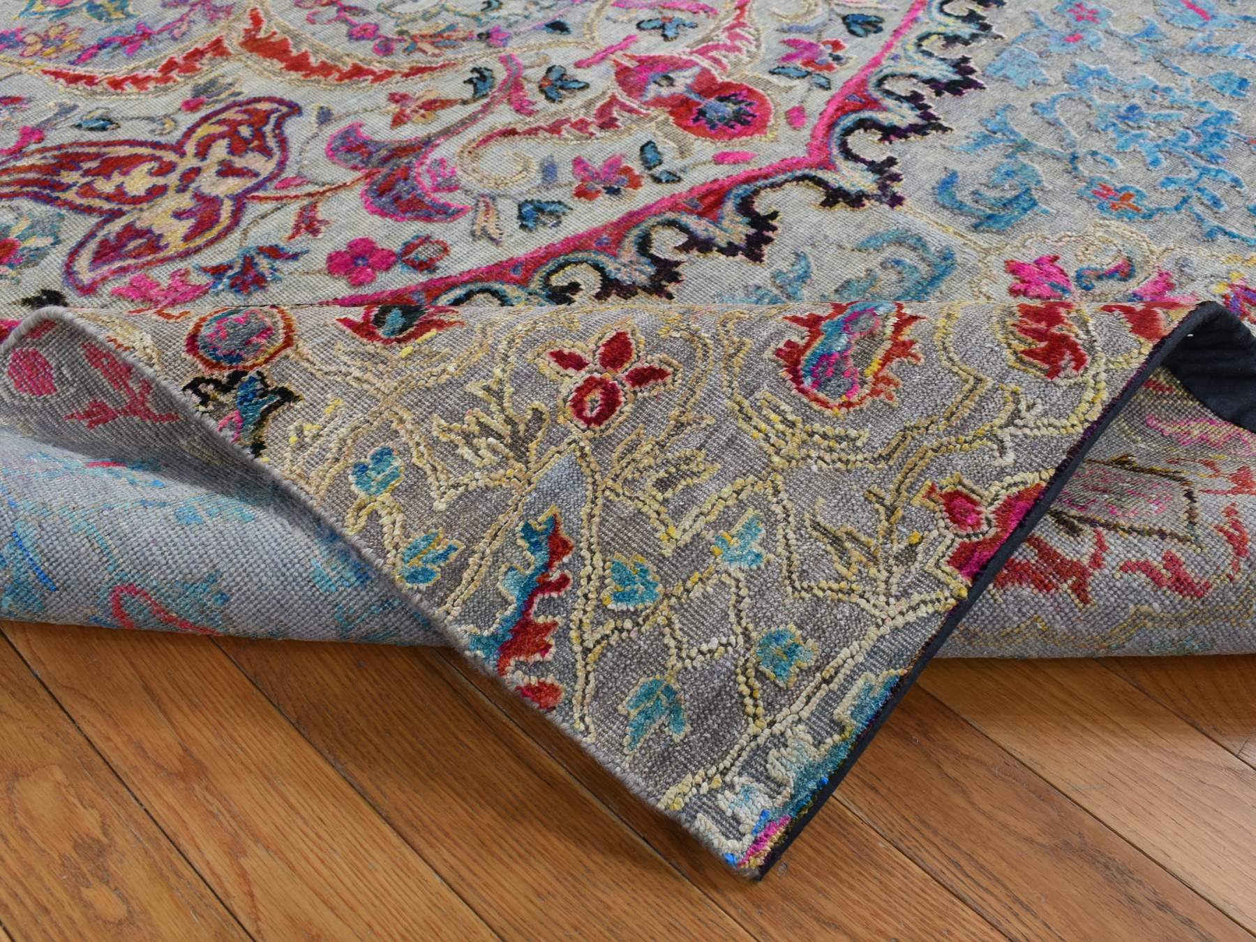 8'0" x 10'0" New Hand Knotted Grey Wool & Silk Rectangle Oriental Rug - MOA10287707