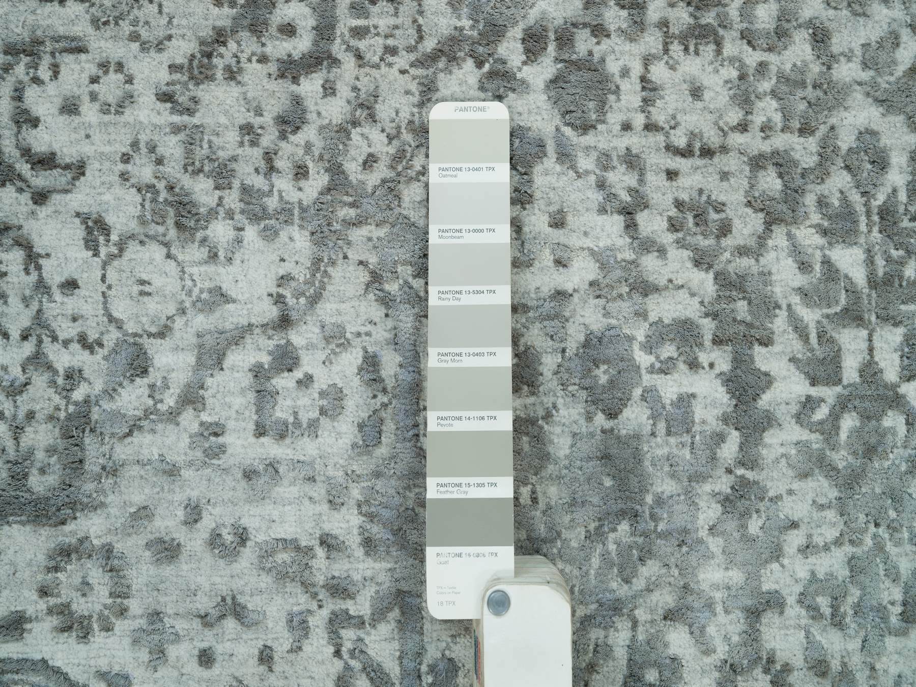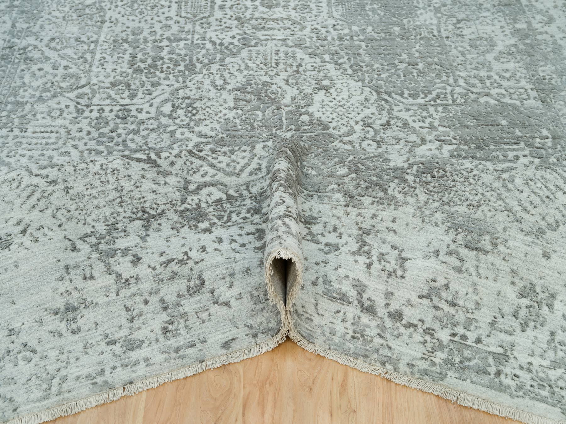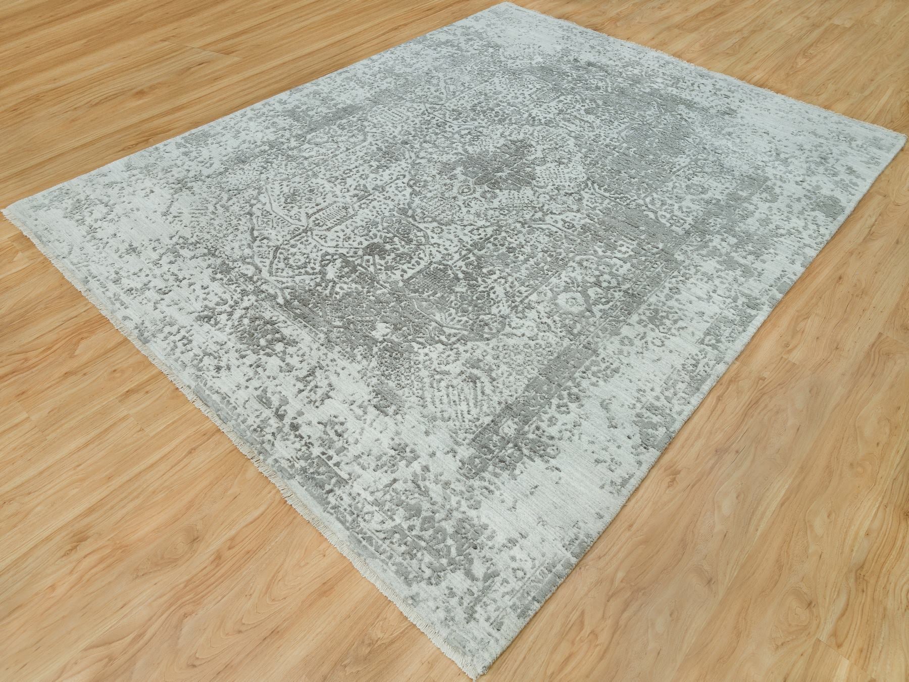 8'0" x 10'1" New Hand Knotted Grey Wool & Silk Rectangle Oriental Rug - MOA10290200