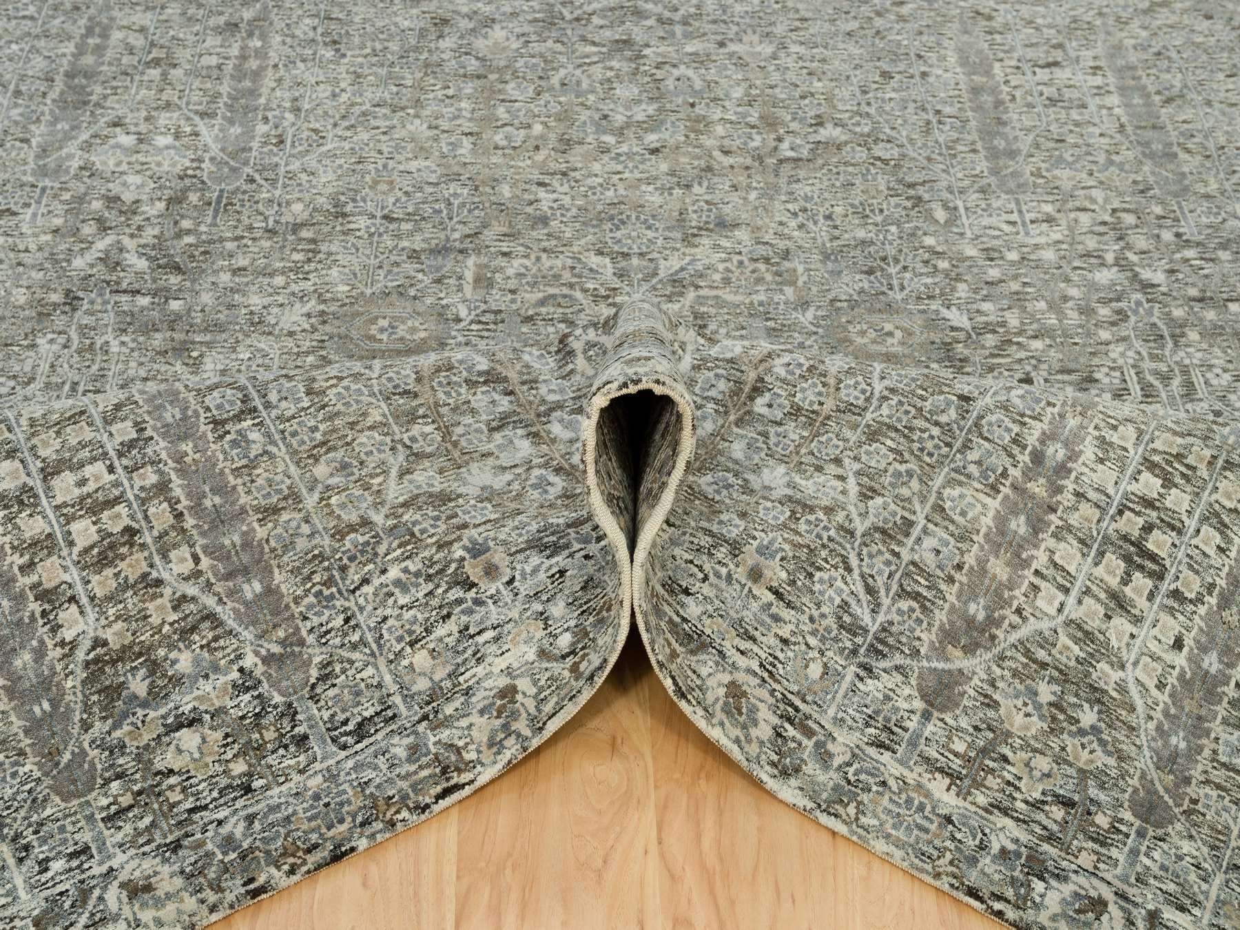 8'1" x 10'1" New Hand Knotted Grey Wool & Silk Rectangle Oriental Rug - MOA10290219