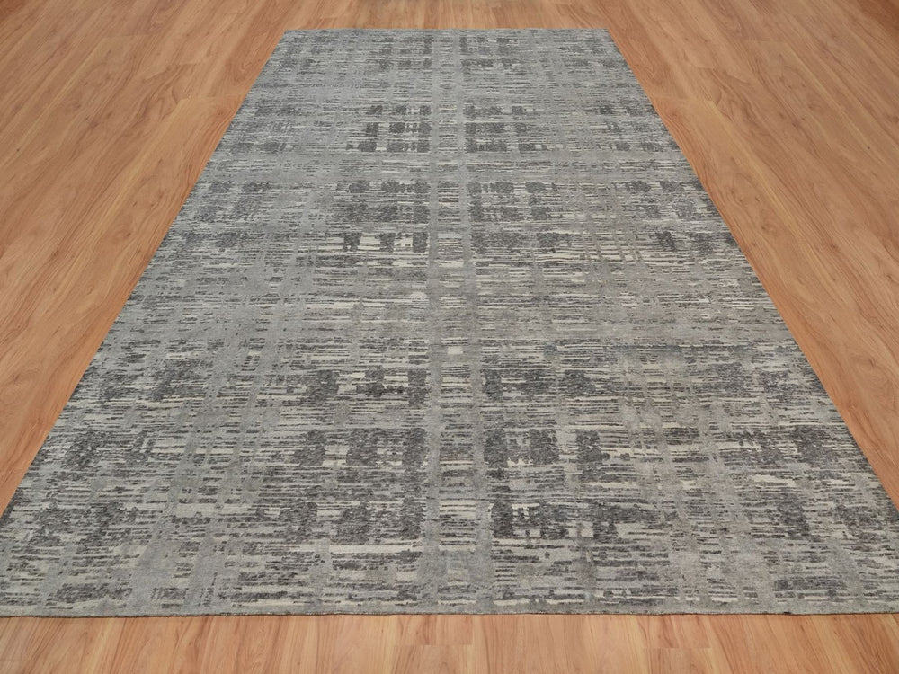 10'0" x 14'1" New Hand Knotted Grey Wool Rectangle Oriental Rug - MOA10291831