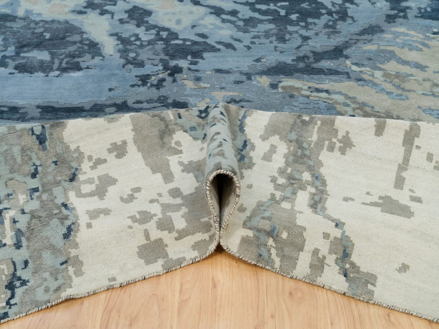 11'11" x 18'1" New Hand Knotted Blue Wool & Silk Rectangle Oriental Rug - MOA10290217