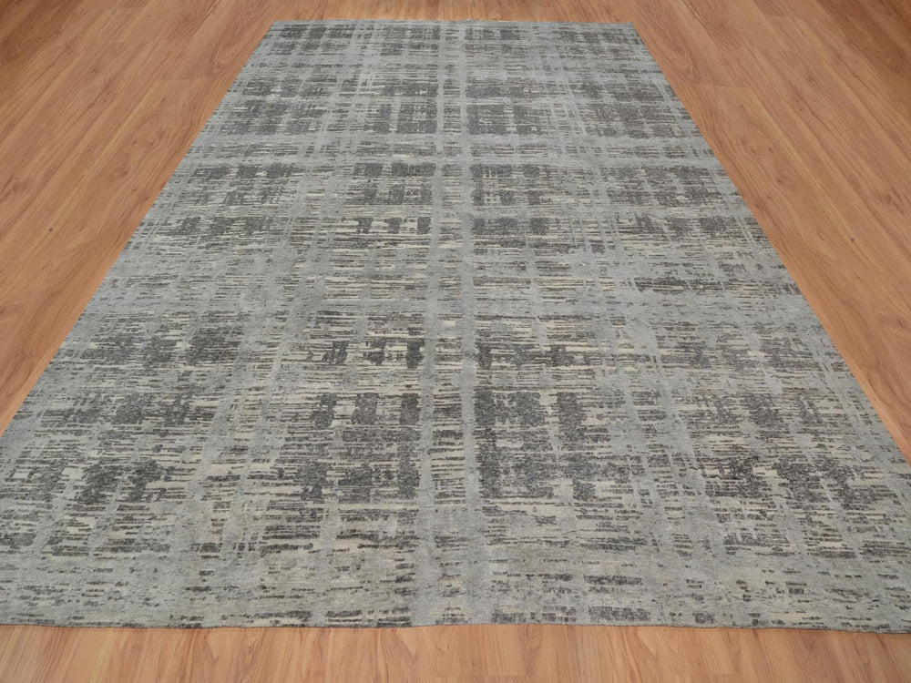 12'0" x 14'11" New Hand Knotted Grey Wool Rectangle Oriental Rug - MOA10291860