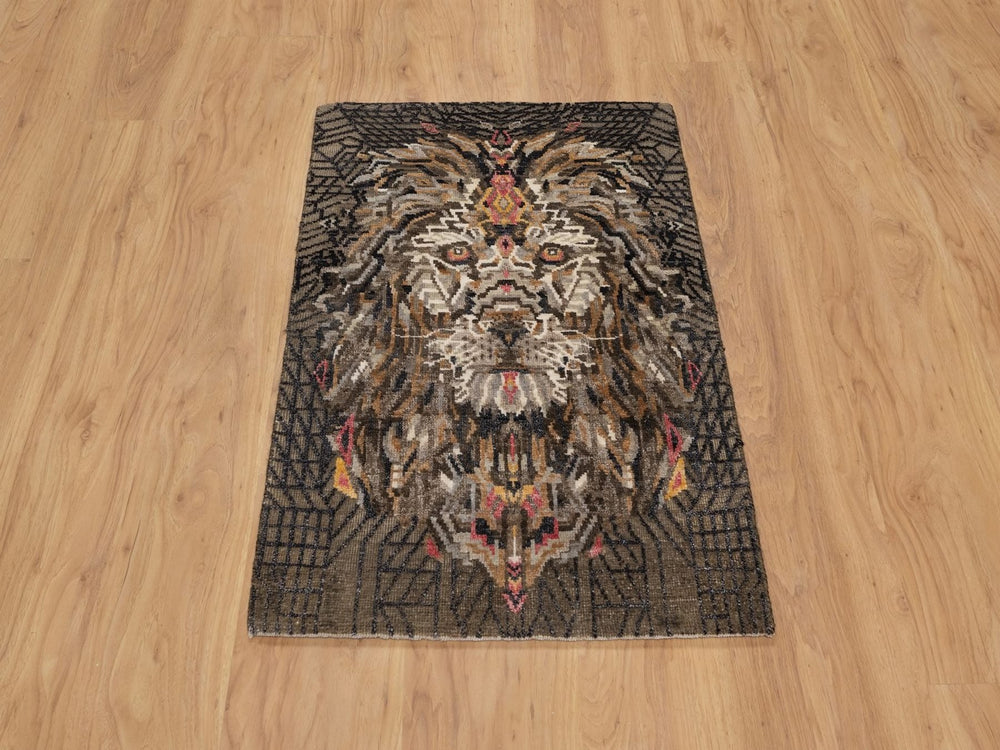 2'0" x 3'0" New Hand Knotted Brown Wool & Silk Rectangle Oriental Rug - MOA10291882