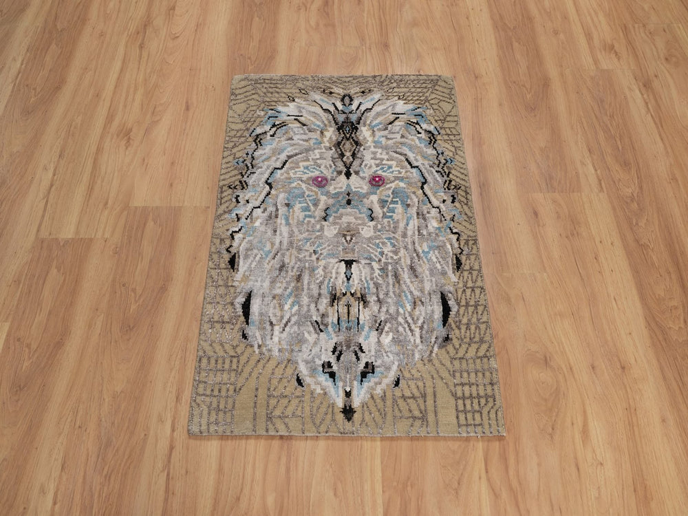 2'0" x 3'0" New Hand Knotted Brown Wool & Silk Rectangle Oriental Rug - MOA10291885