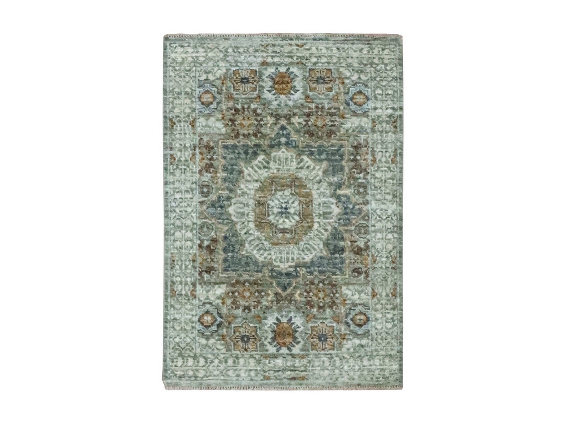 2'1" x 3'1" New Hand Knotted Green Cotton Rectangle Oriental Rug - MOA10276816