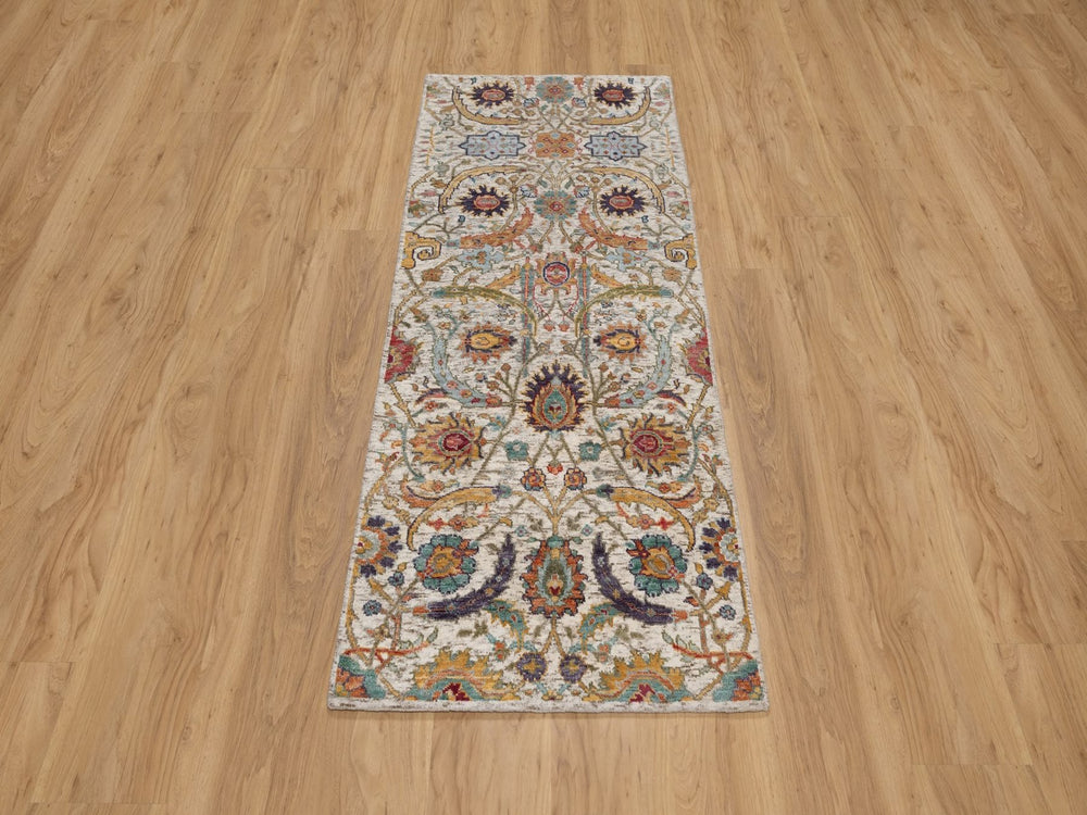 2'5" x 5'11" New Hand Knotted Ivory Wool & Silk Runner Oriental Rug - MOA10291915