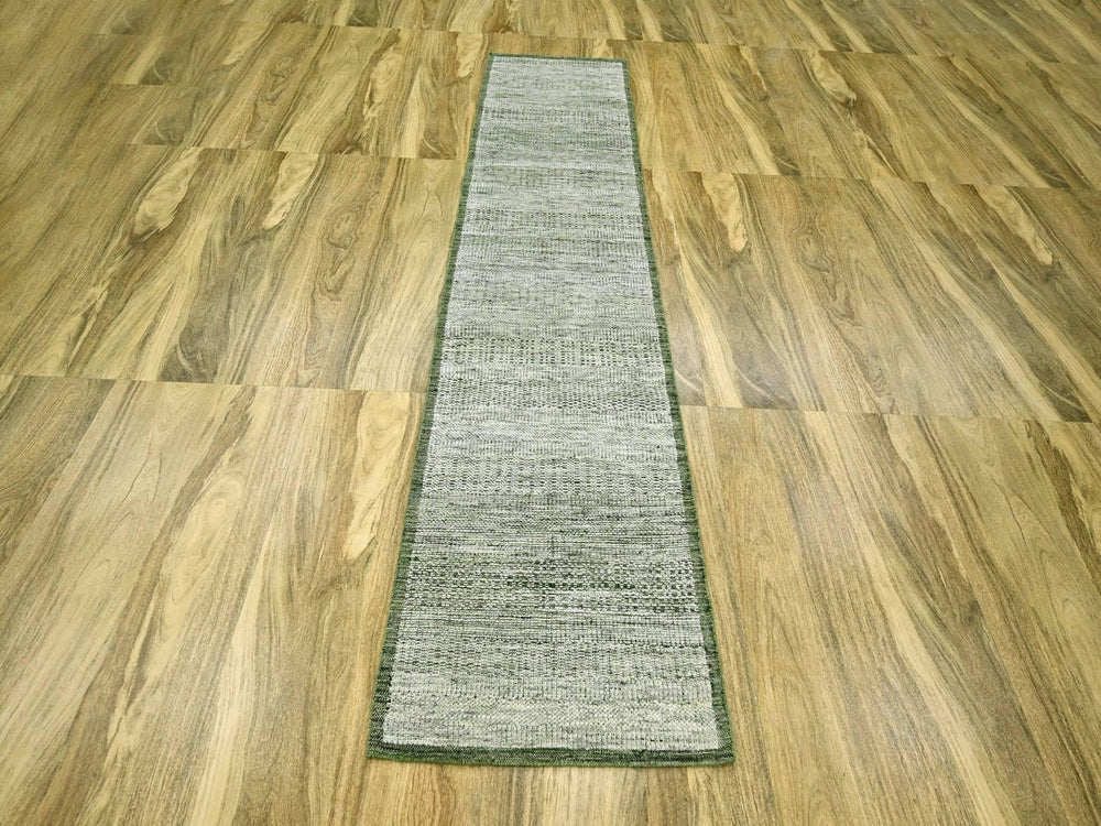 2'6" x 10'0" New Hand Knotted Green Wool Runner Oriental Rug - MOA10276741
