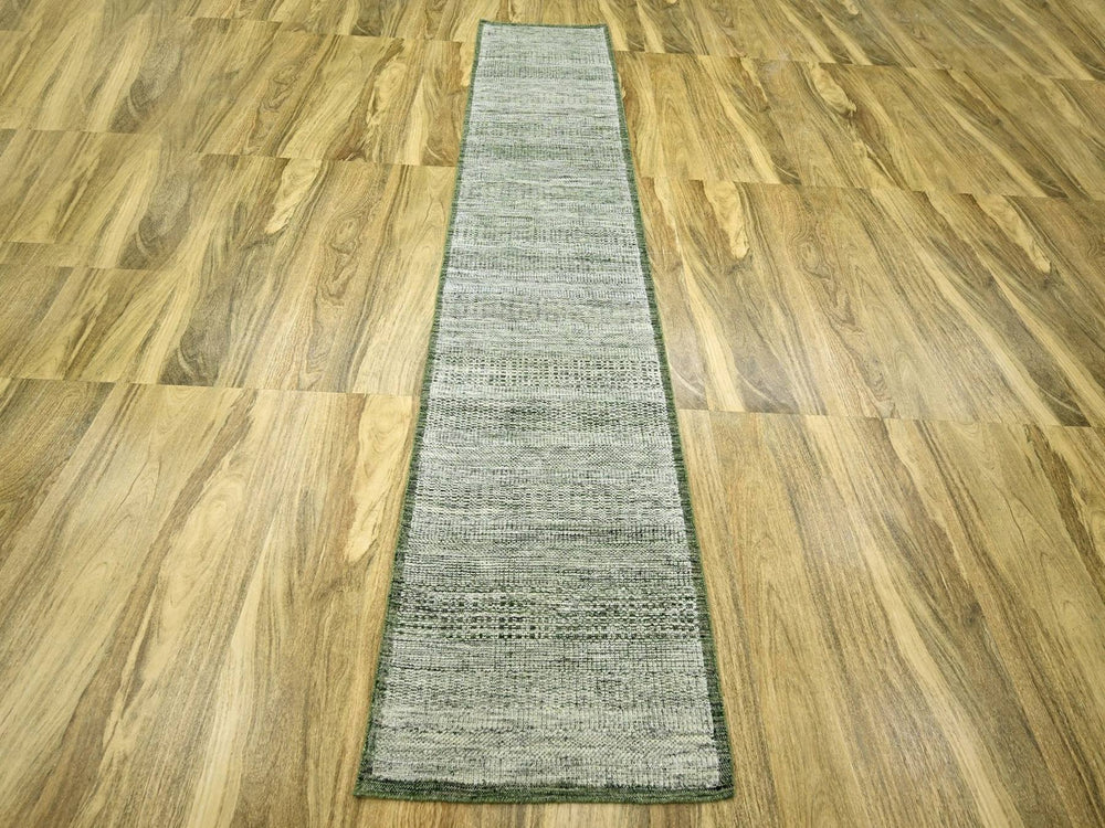 2'6" x 11'10" New Hand Knotted Green Wool Runner Oriental Rug - MOA10276740