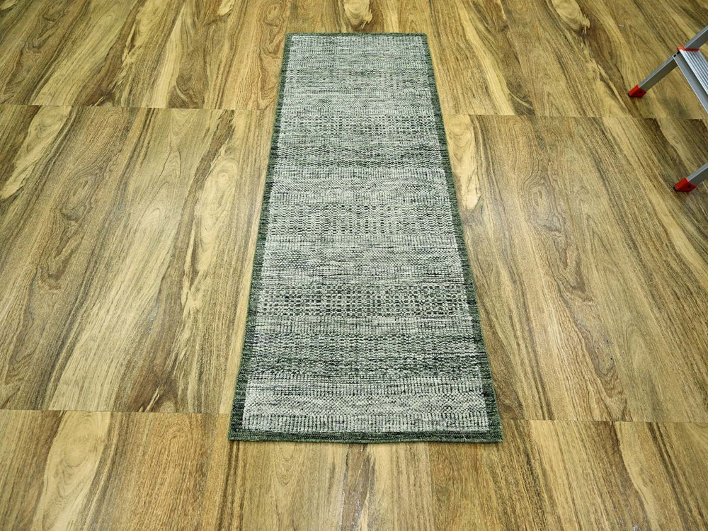 2'6" x 6'0" New Hand Knotted Green Wool Runner Oriental Rug - MOA10276739