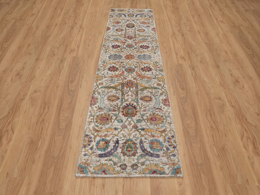 2'7" x 10'0" New Hand Knotted Ivory Wool & Silk Runner Oriental Rug - MOA10291925