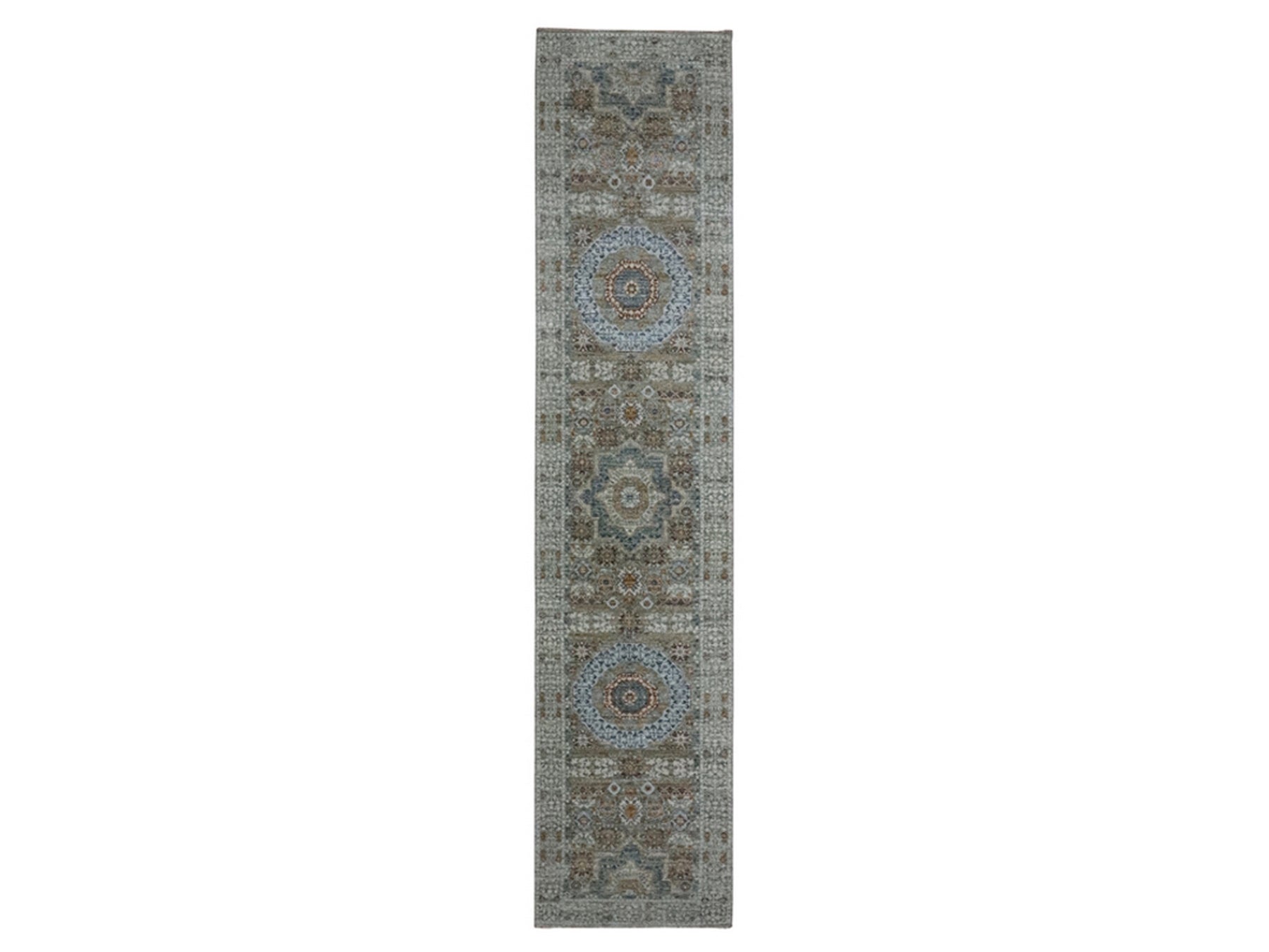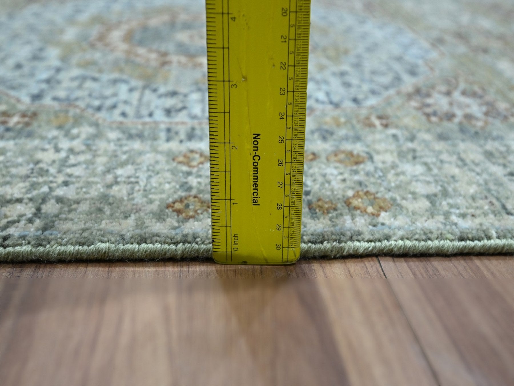 2'7" x 12'1" New Hand Knotted Green Wool Runner Oriental Rug - MOA10276815