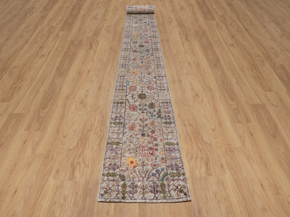 2'7" x 27'3" New Hand Knotted Ivory Wool & Silk Runner Oriental Rug - MOA10291898