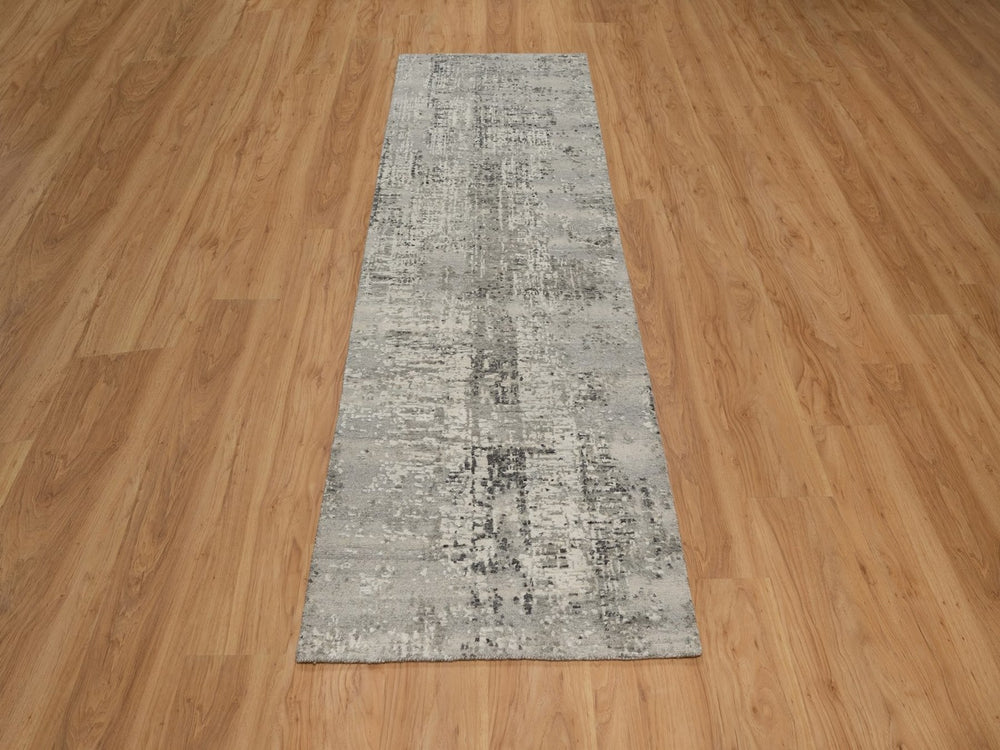 2'7" x 8'0" New Hand Knotted Grey Wool Runner Oriental Rug - MOA10291826