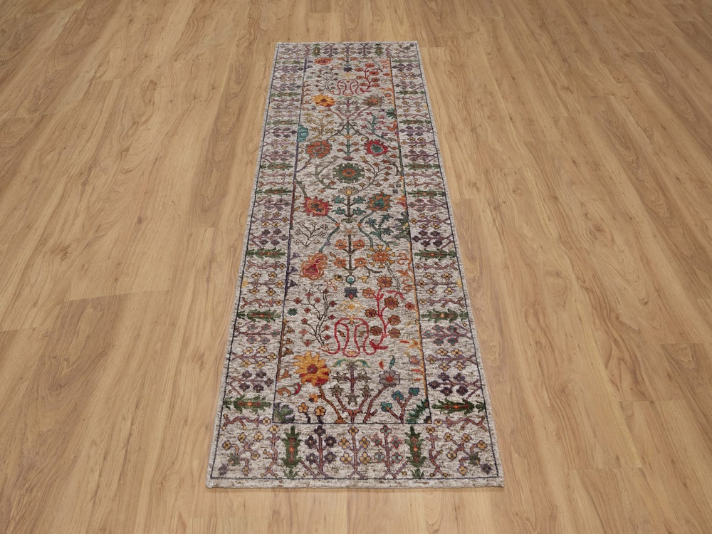 2'7" x 8'2" New Hand Knotted Ivory Wool & Silk Runner Oriental Rug - MOA10291914