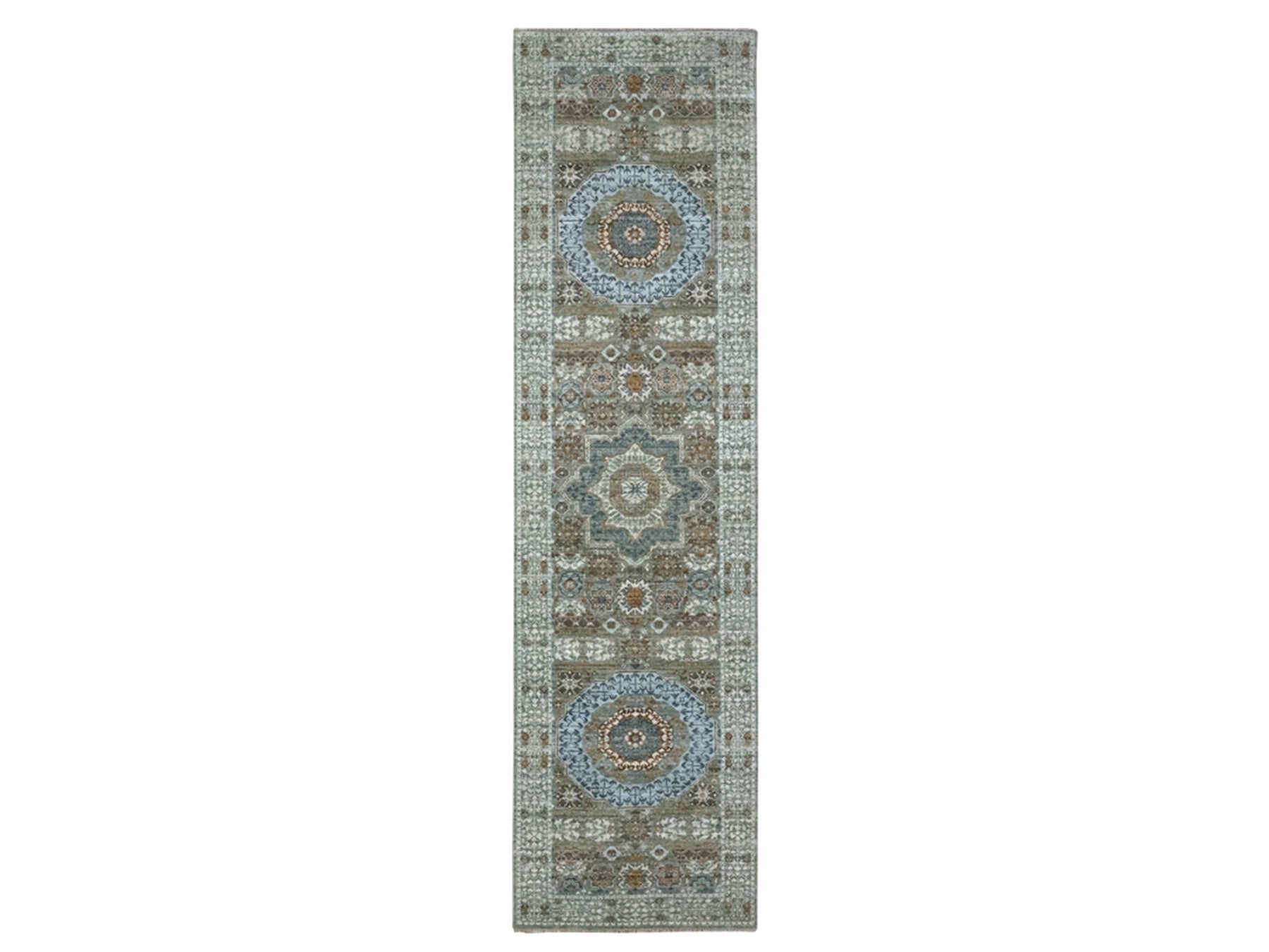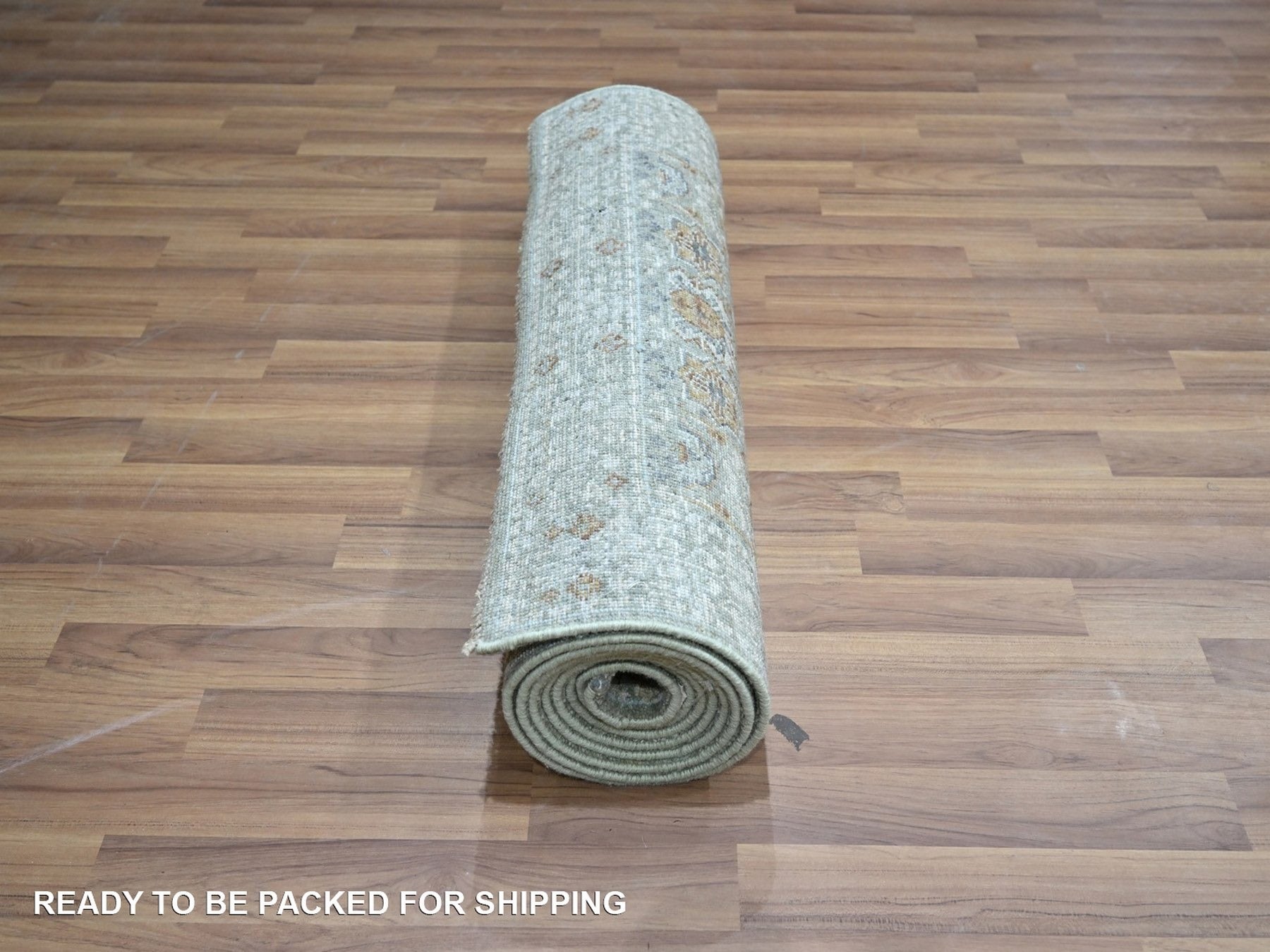 2'8" x 10'4" New Hand Knotted Green Wool Runner Oriental Rug - MOA10276813