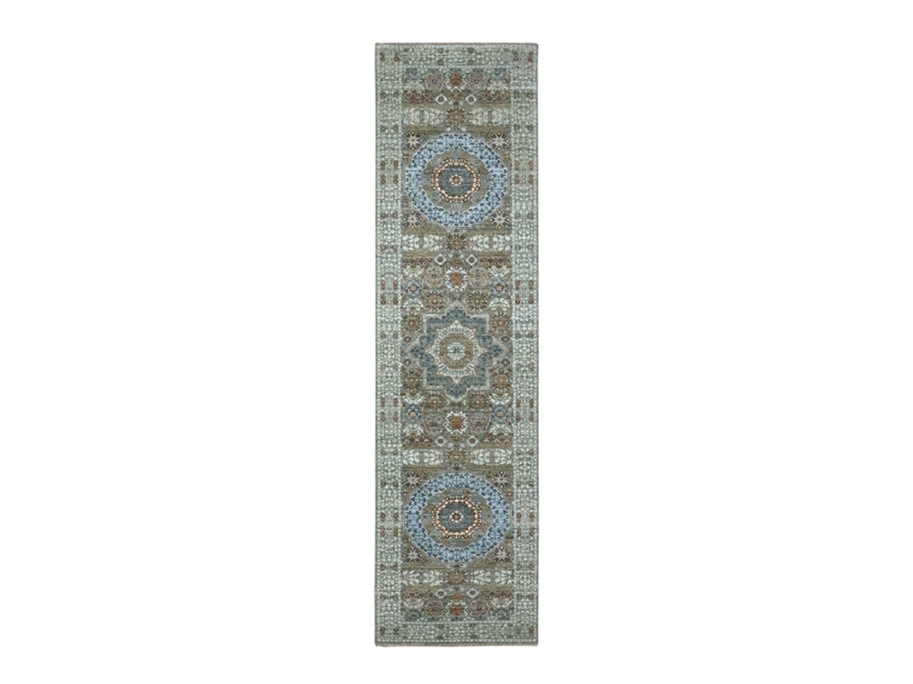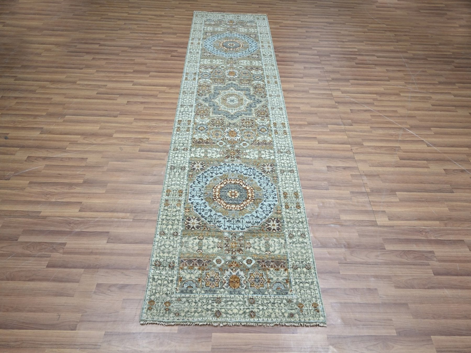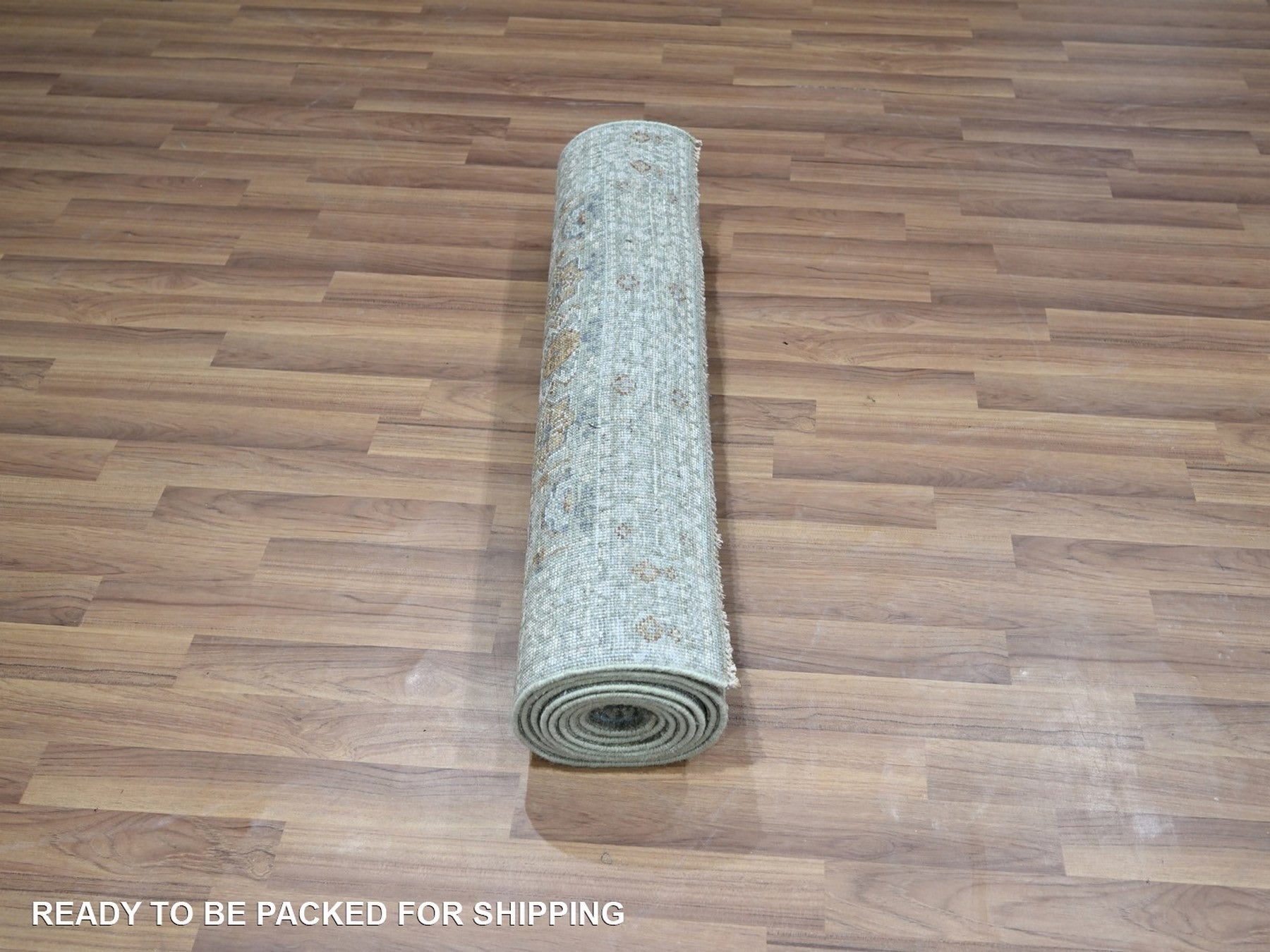 2'9" x 10'4" New Hand Knotted Green Wool Runner Oriental Rug - MOA10276812