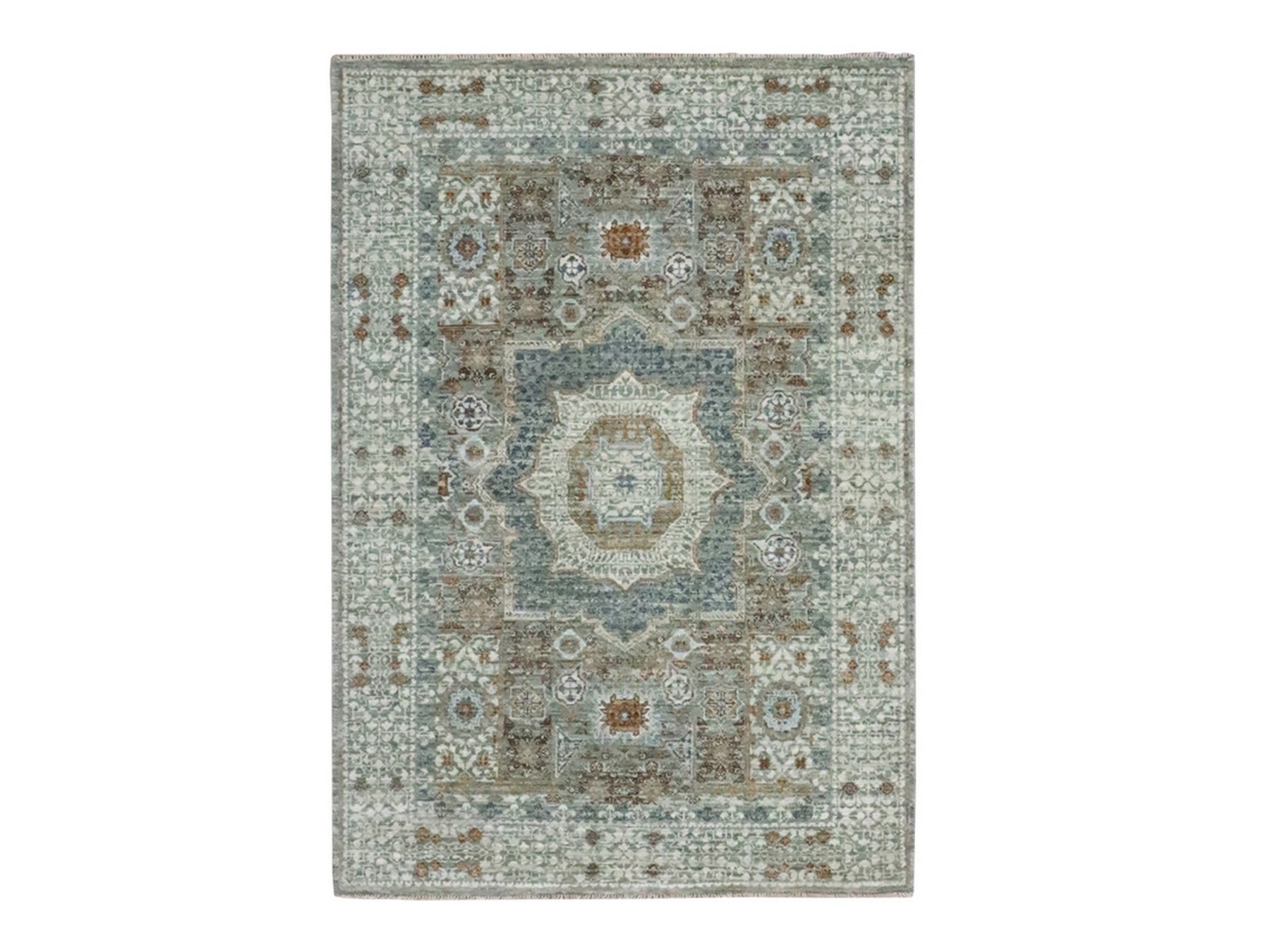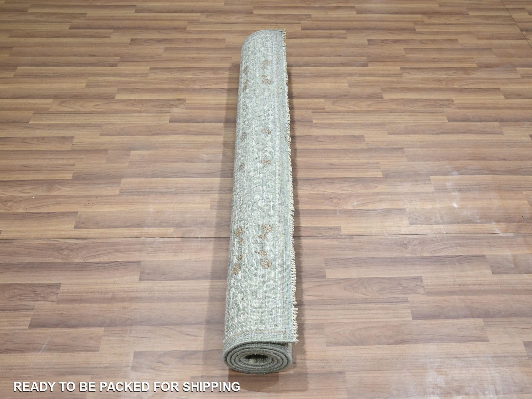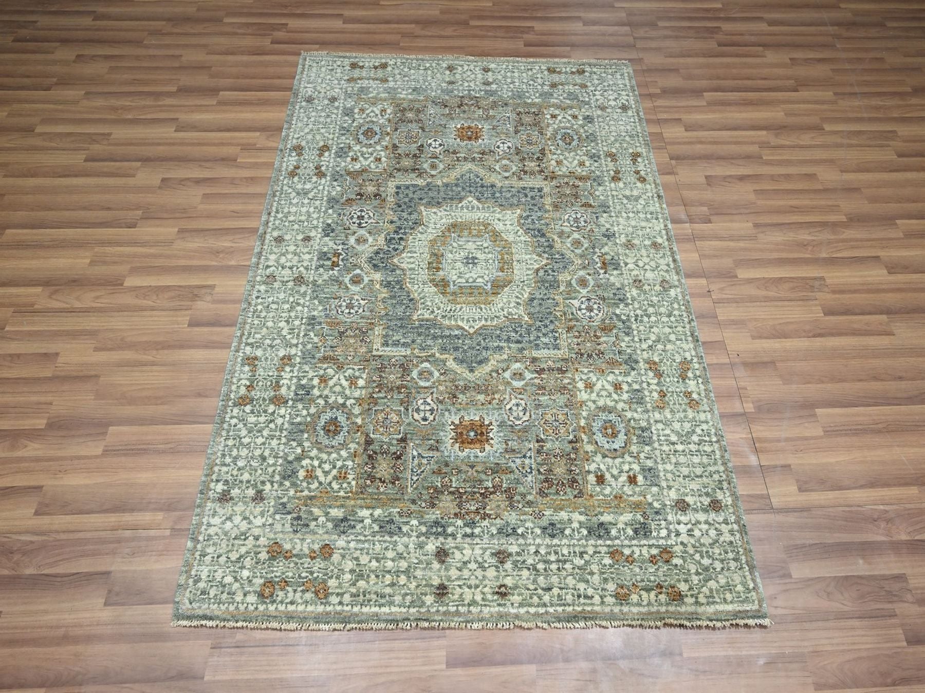 4'1" x 5'11" New Hand Knotted Green Wool Rectangle Oriental Rug - MOA10276805