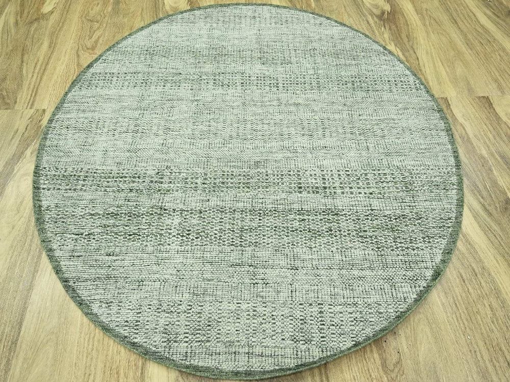5'11" x 6'0" New Hand Knotted Green Wool Round Oriental Rug - MOA10276732