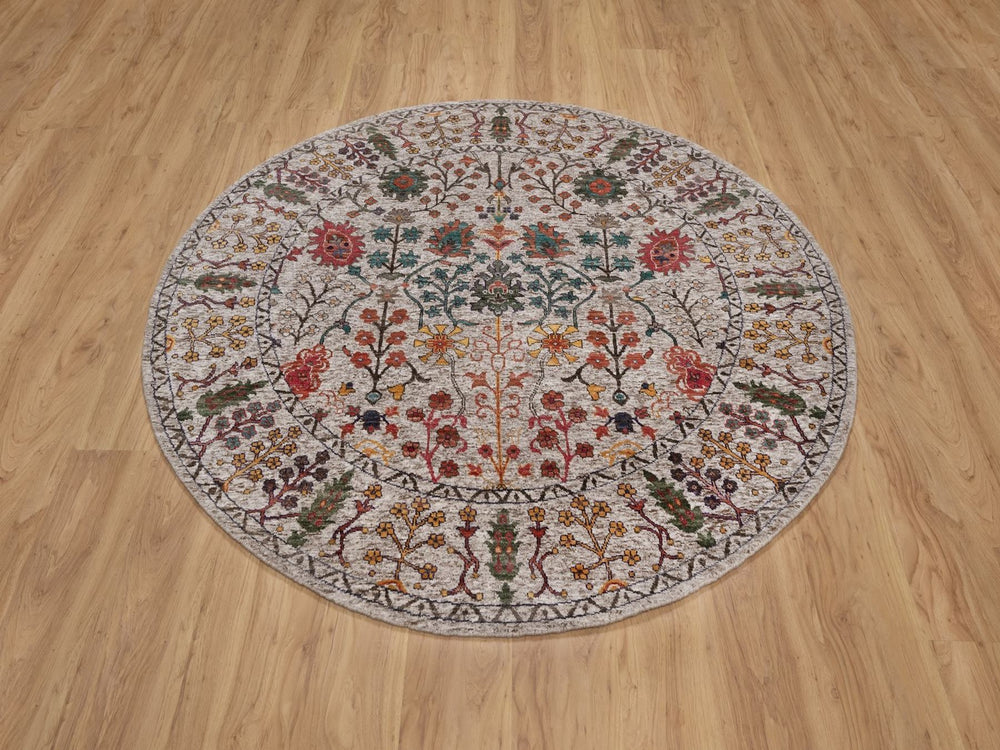 6'0" x 6'0" New Hand Knotted Ivory Wool & Silk Round Oriental Rug - MOA10291908