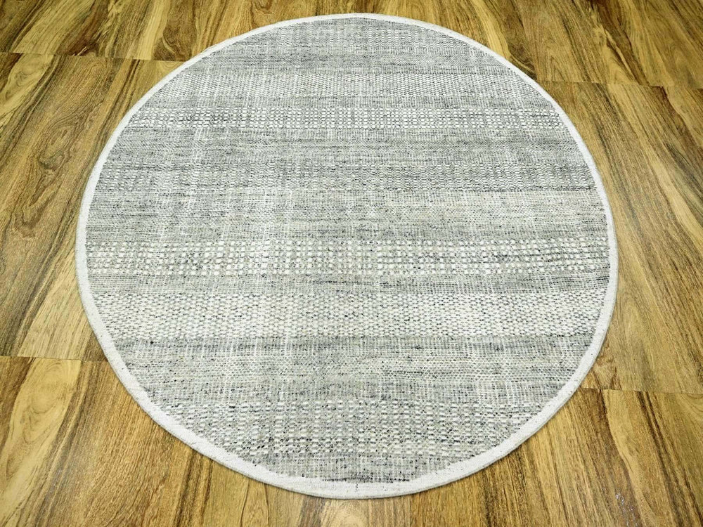 6'0" x 6'1" New Hand Knotted Grey Wool Round Oriental Rug - MOA10276729