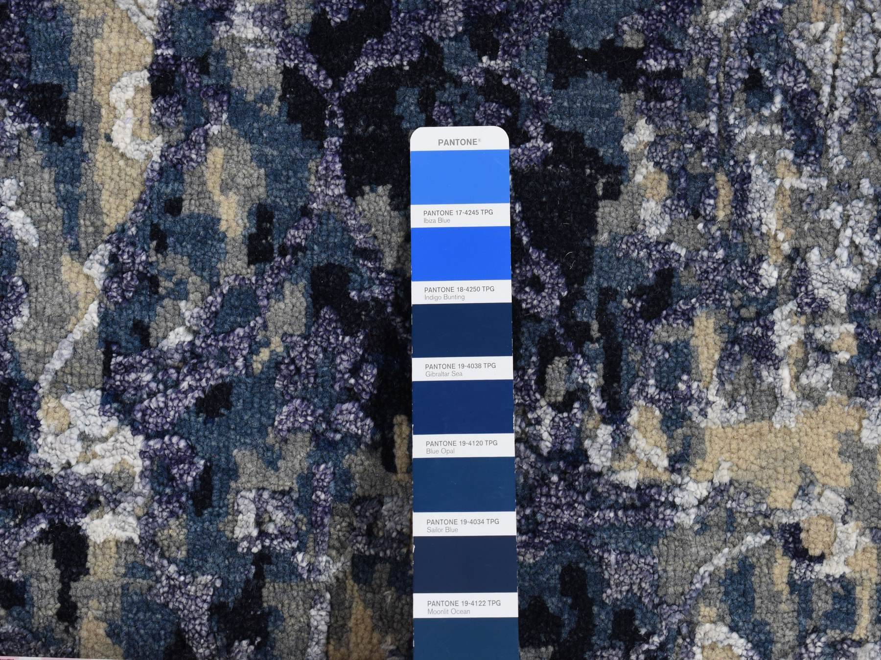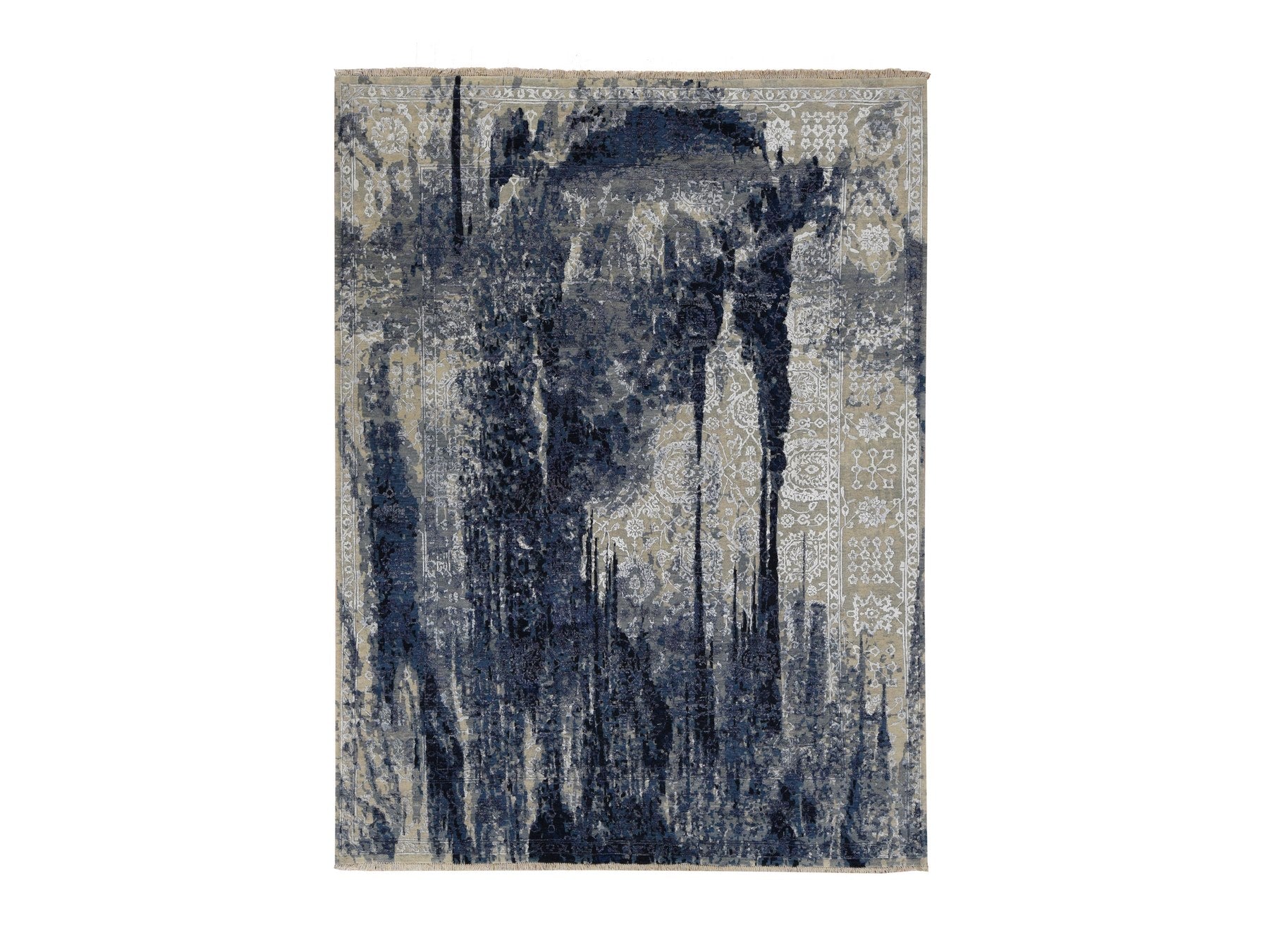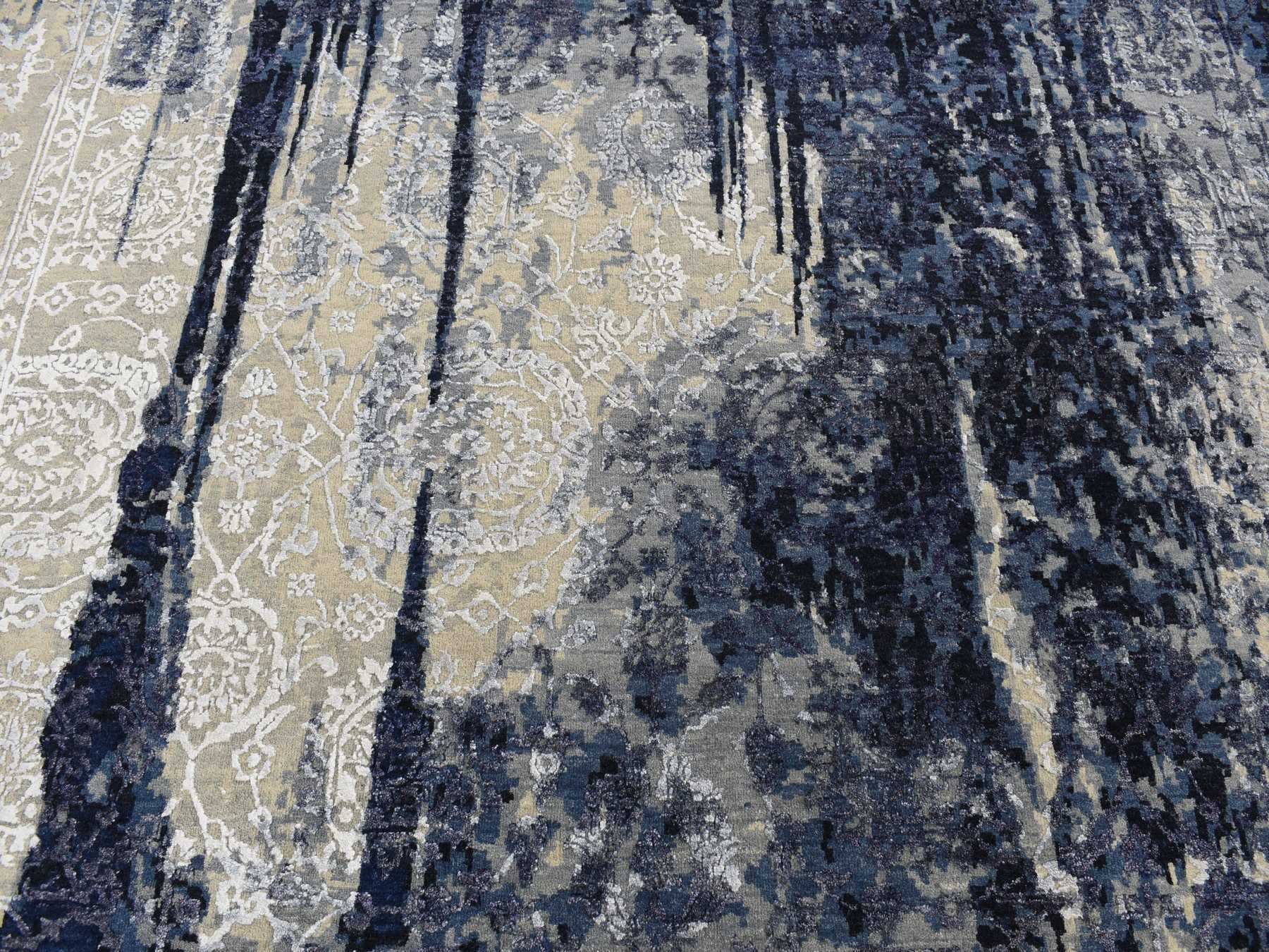 6'0" x 8'10" New Hand Knotted Blue Wool & Silk Rectangle Oriental Rug - MOA10287431