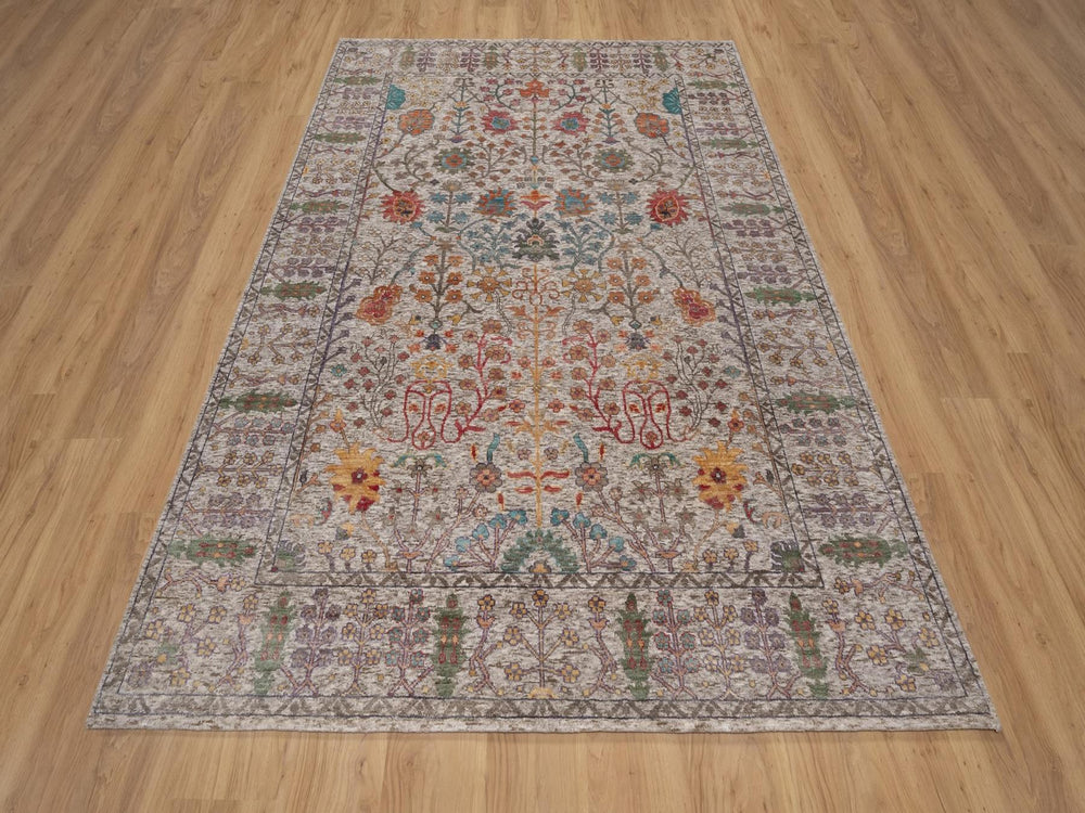 6'0" x 8'11" New Hand Knotted Ivory Wool & Silk Rectangle Oriental Rug - MOA10291927