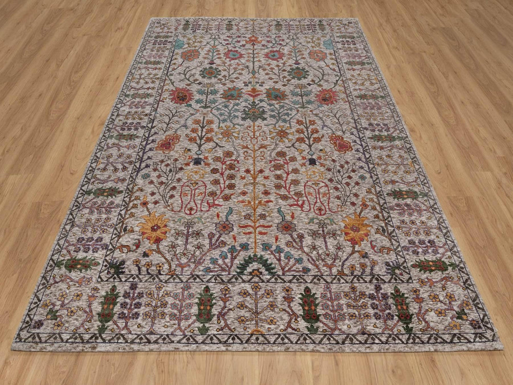 6'2" x 9'2" New Hand Knotted Ivory Wool & Silk Rectangle Oriental Rug - MOA10291896