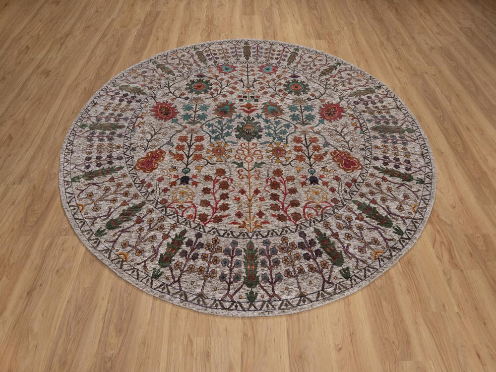 7'10" x 7'10" New Hand Knotted Ivory Wool & Silk Round Oriental Rug - MOA10291919