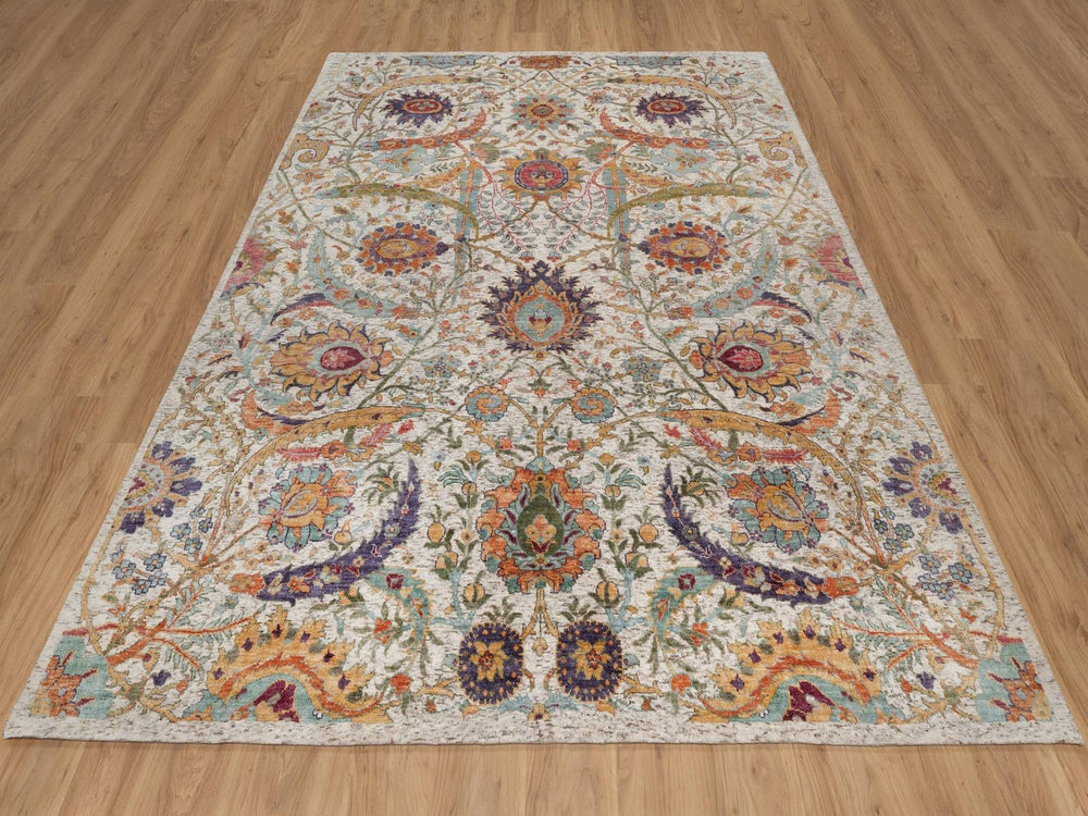 7'10" x 9'11" New Hand Knotted Ivory Wool & Silk Rectangle Oriental Rug - MOA10291922
