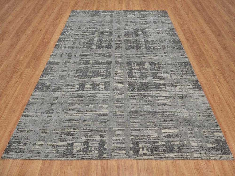 8'1" x 10'1" New Hand Knotted Grey Wool Rectangle Oriental Rug - MOA10291832