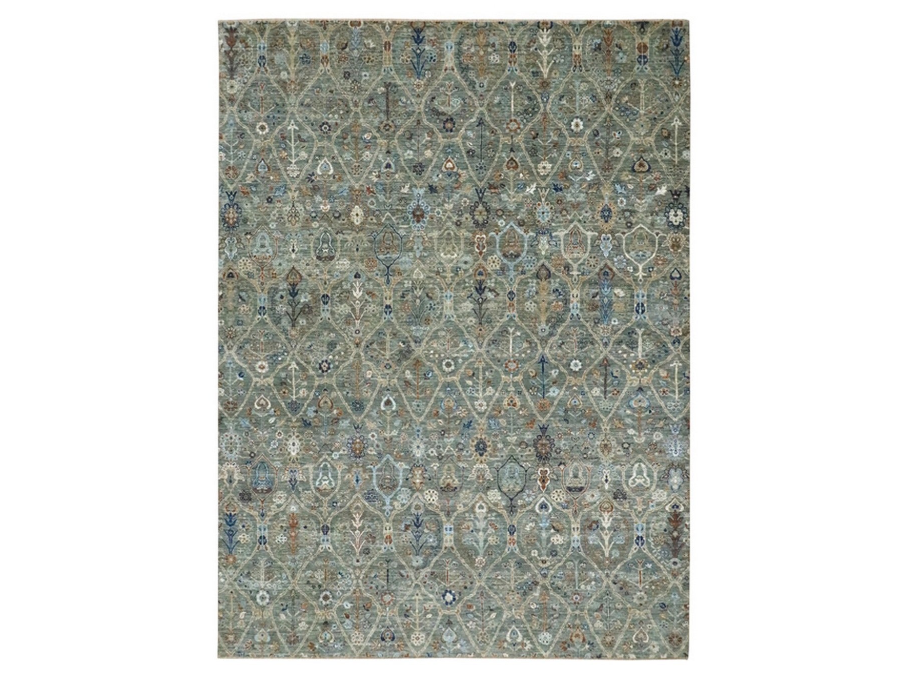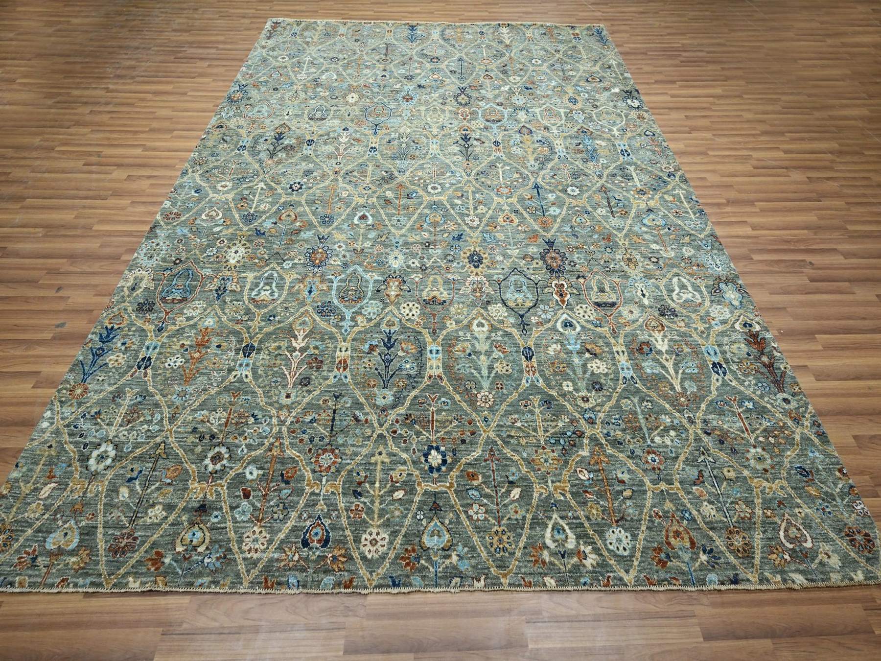 8'10" x 11'11" New Hand Knotted Green Wool Rectangle Oriental Rug - MOA10276792