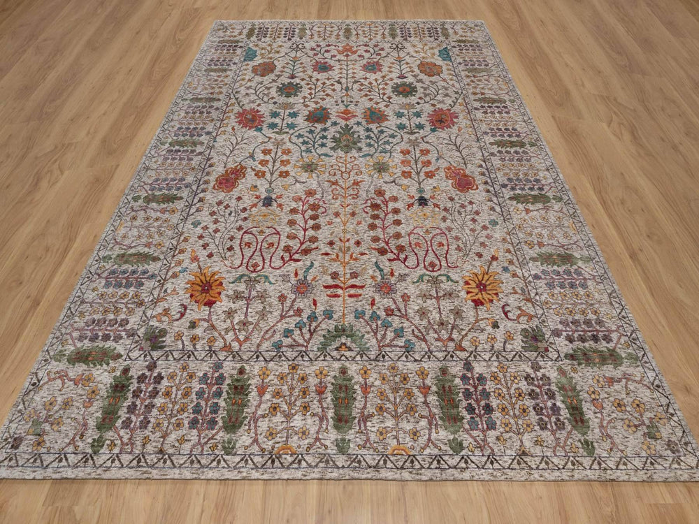 9'0" x 12'0" New Hand Knotted Ivory Wool & Silk Rectangle Oriental Rug - MOA10291888
