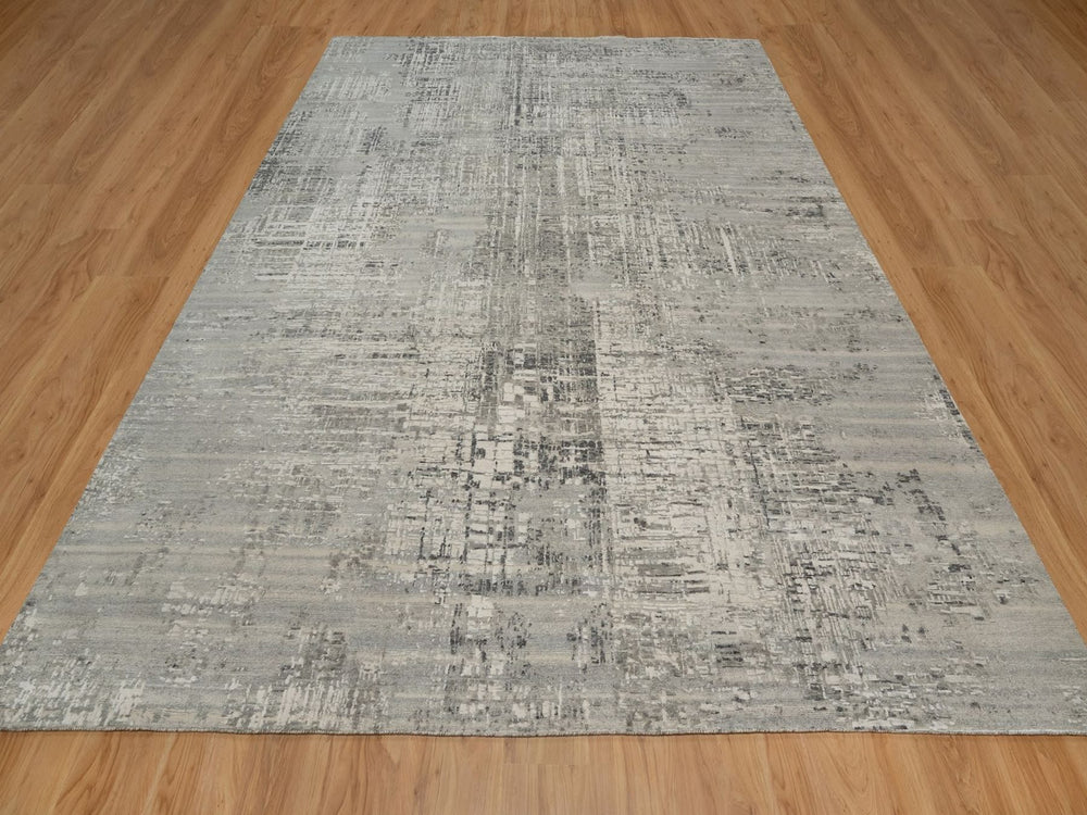 9'0" x 12'1" New Hand Knotted Grey Wool Rectangle Oriental Rug - MOA10291815