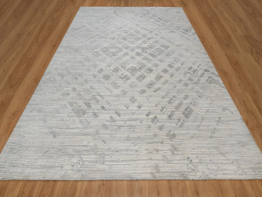 9'0" x 12'1" New Hand Knotted Ivory Wool Rectangle Oriental Rug - MOA10291841