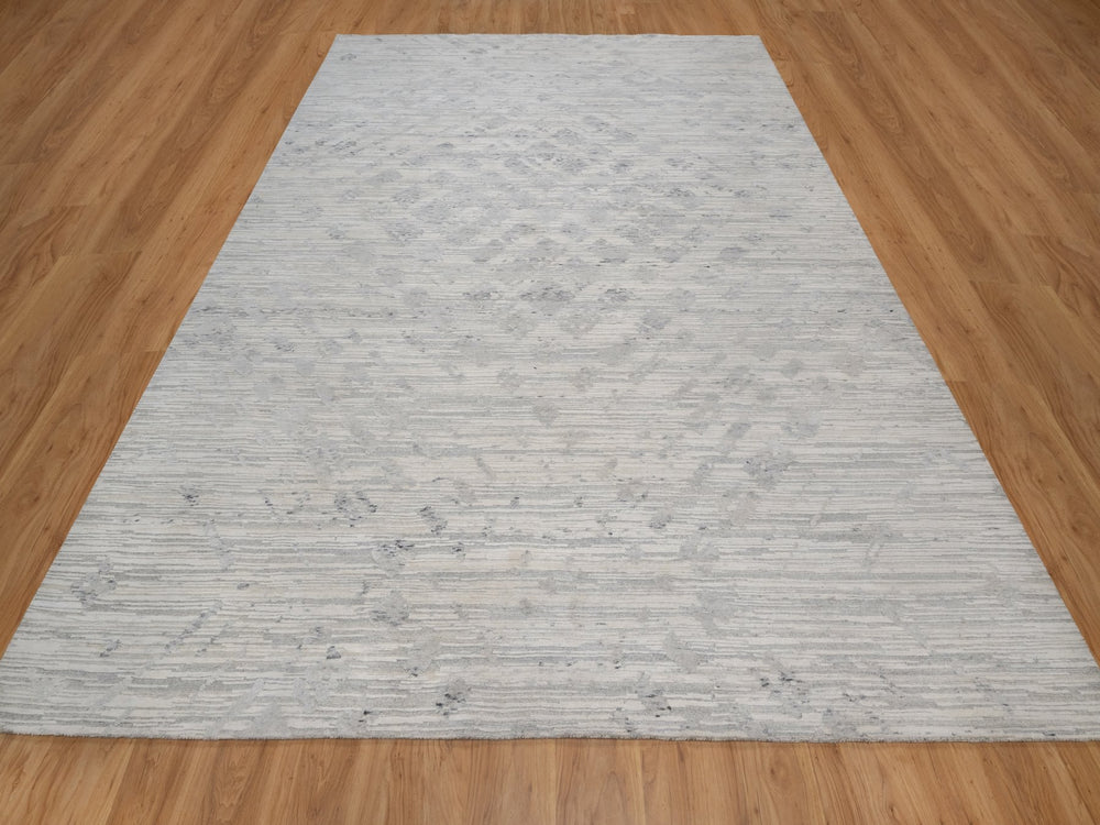 9'0" x 12'1" New Hand Knotted Ivory Wool Rectangle Oriental Rug - MOA10291859