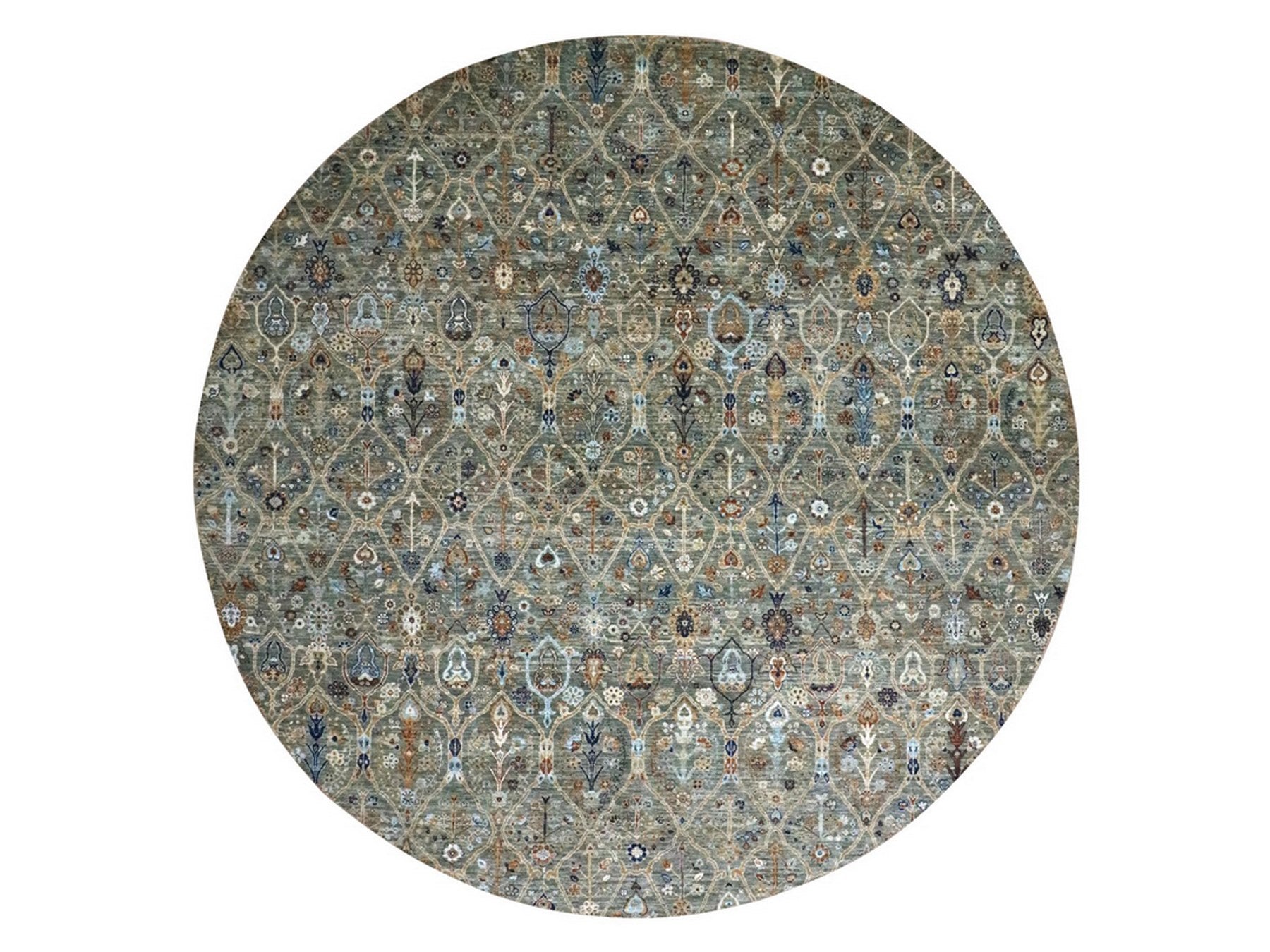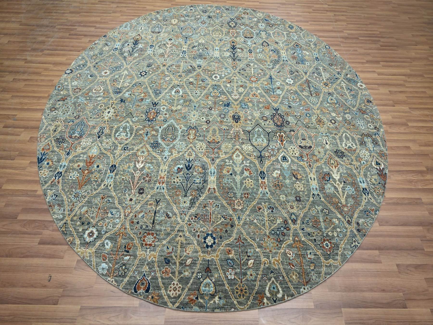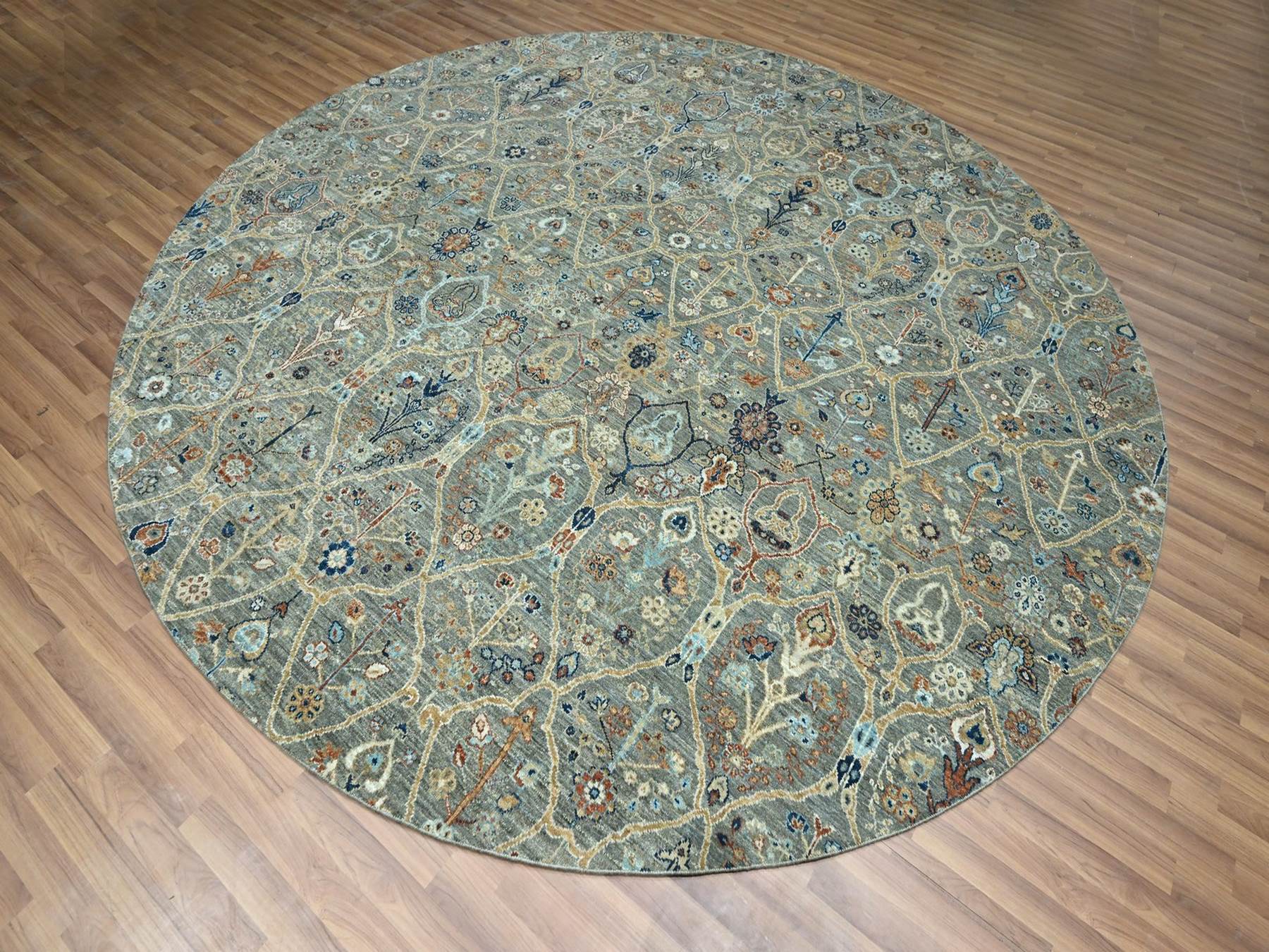 9'10" x 9'10" New Hand Knotted Green Wool Round Oriental Rug - MOA10276791
