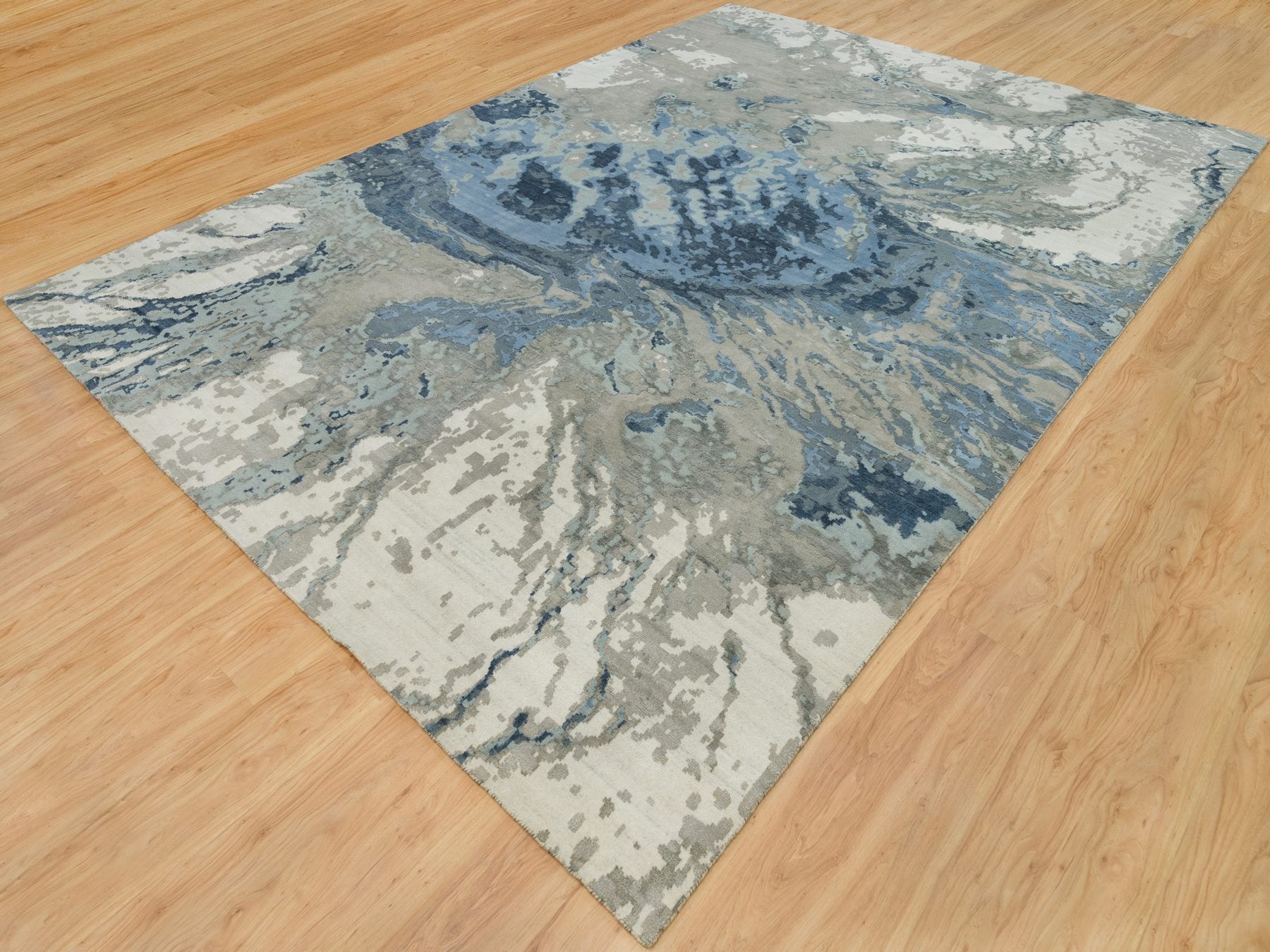 9'11" x 14'1" New Hand Knotted Blue Wool & Silk Rectangle Oriental Rug - MOA10290218