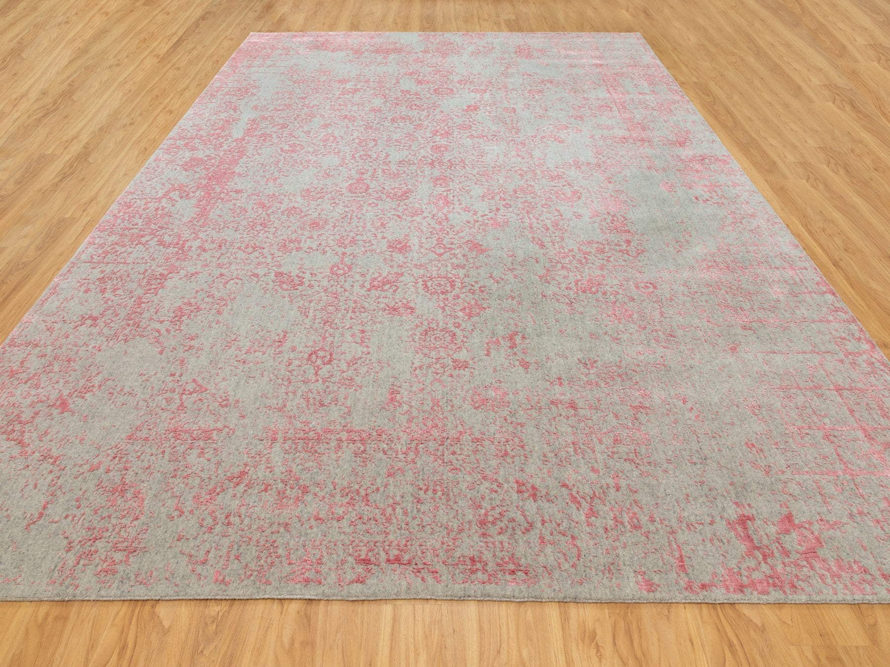 10'0" x 14'1" New Hand Loomed Pink Wool & Art Silk Rectangle Oriental Rug - MOA10258581