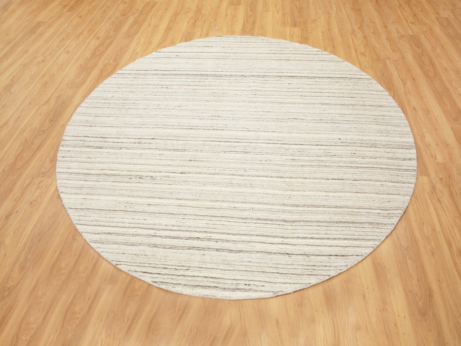 8'0" x 8'0" New Hand Loomed Beige Wool Round Oriental Rug - MOA10258350