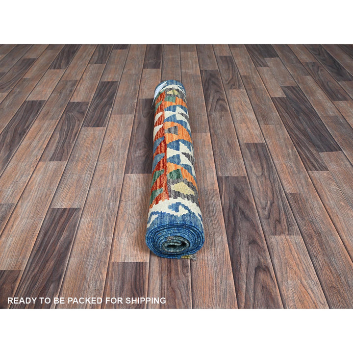 2'10" x 8'3" New Hand Woven Blue Wool Runner Oriental Rug - MOA1021236